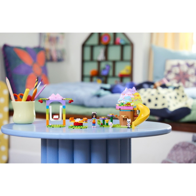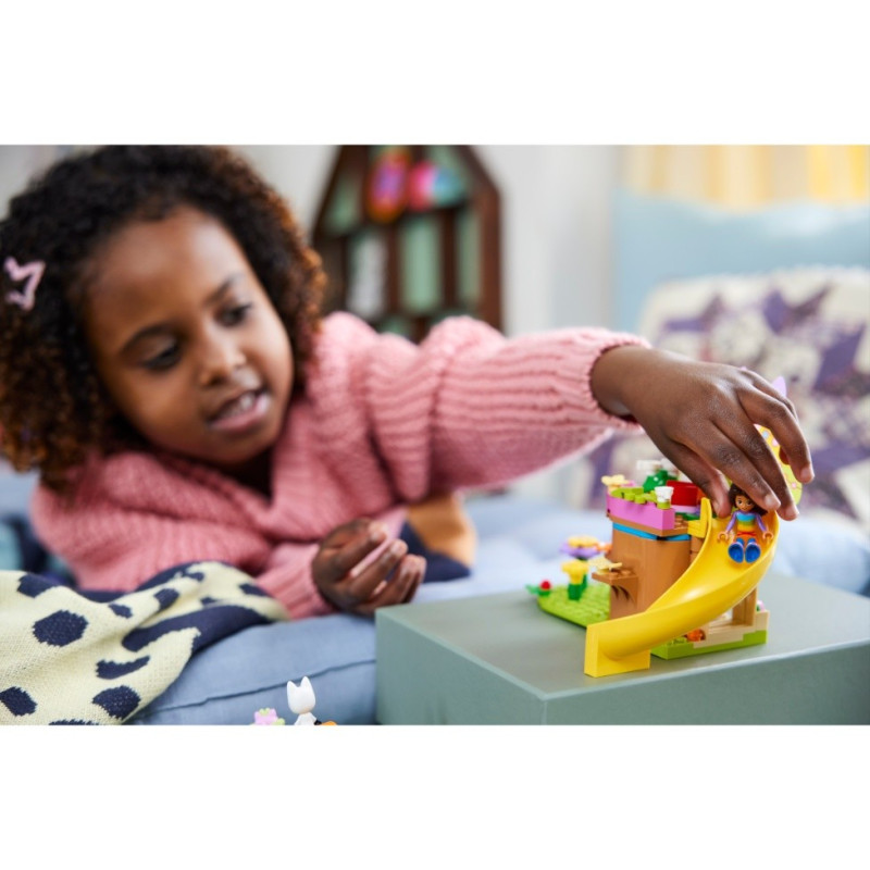 • Kultovní postavy – Součástí je minipanenka Gábi a figurka Pandy Ťapky a Víly kočičky, a navíc sestavitelný domek ve stromě s postelí a dobrotami a zahrada se skluzavkou, houpačkou a kolotočem