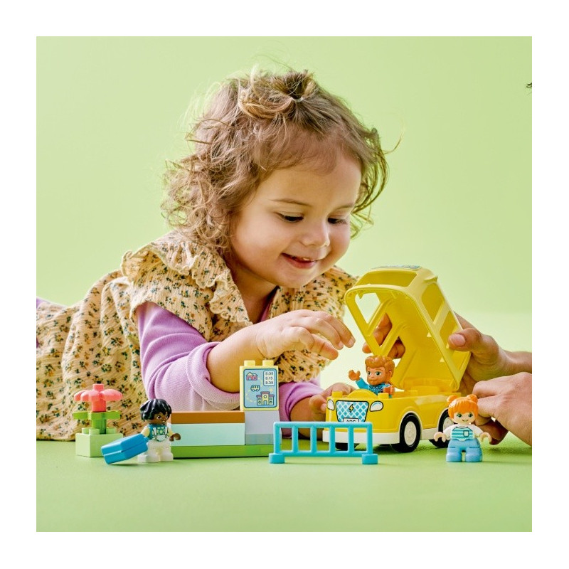 Malé děti se stavebnicí LEGO® DUPLO® Město (10988) Cesta autobusem zažijí dobrodružství všedního dne. Tato barevná stavebnice s hračkou pro batolata umožňuje dětem od 2 let představit si cestu do školky s nejlepšími kamarády. Děti trpělivě čekají na autobus na lavičce u zastávky a zjišťují, jaké dobroty mají v krabičkách s obědem. Vzdělávací hračky pro malé děti, aby bylo učení zábava Sady LEGO DUPLO® obsahují rozmanité postavičky, aby si malé děti mohly hrát na poznávání nových kamarádů. Při otevírání střechy školního autobusu a usazování figurek budou děti rozvíjet jemné motorické schopnosti. Když autobus přijede, figurky budou stát za plotem, aby se děti učili, jak se chovat v dopravních situacích. Tato stavebnice stejně jako všechny hračky LEGO® DUPLO® pro malé děti jim nabízí neomezenou zábavu, možnost sebevyjádření a radostné objevování.
