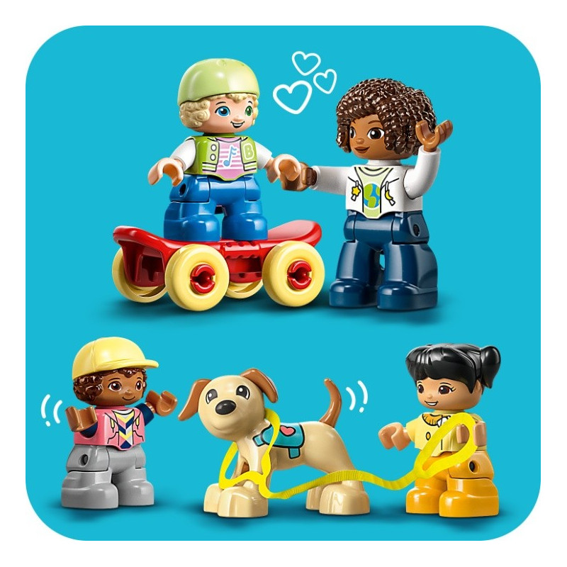 • Hodiny zábavy na hřišti – Všestranná hračka LEGO® DUPLO® Město (10991) Hřiště snů inspiruje k přehrávání bezpočtu příběhů a podněcuje fyzický a mentální vývoj