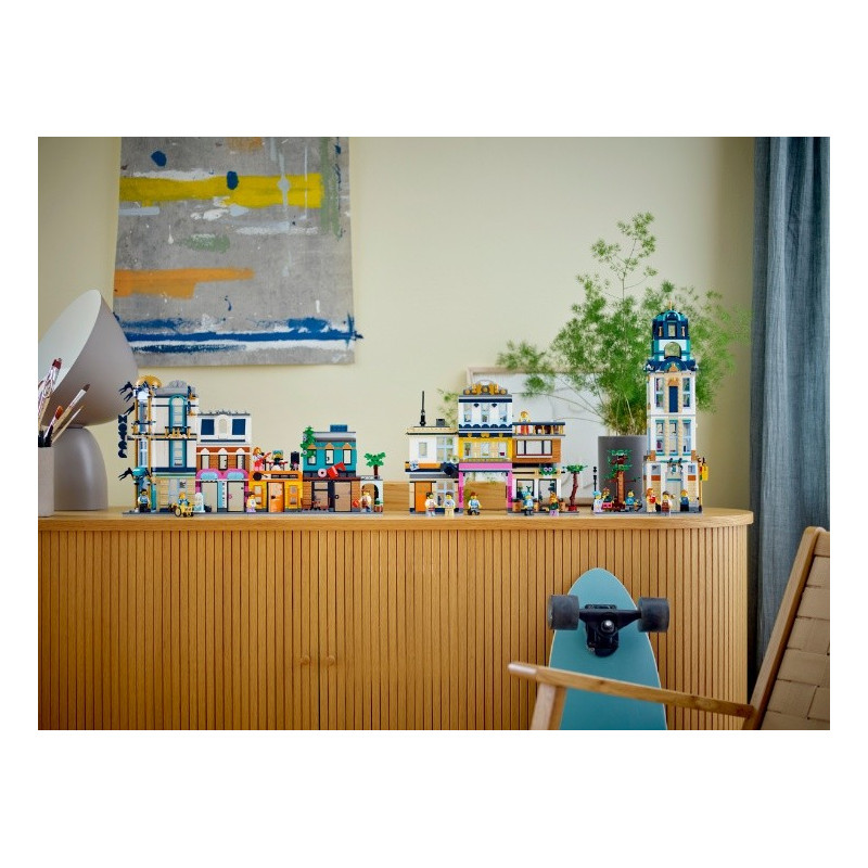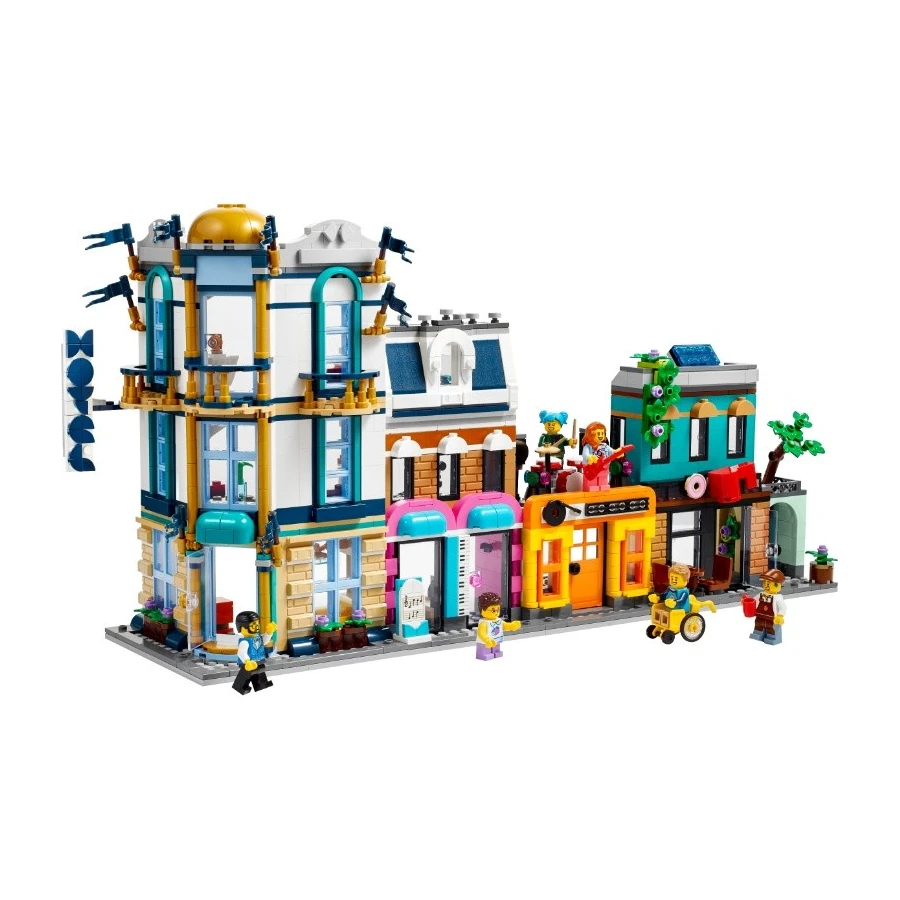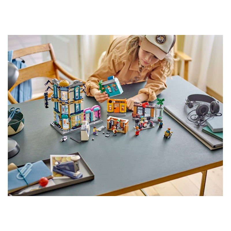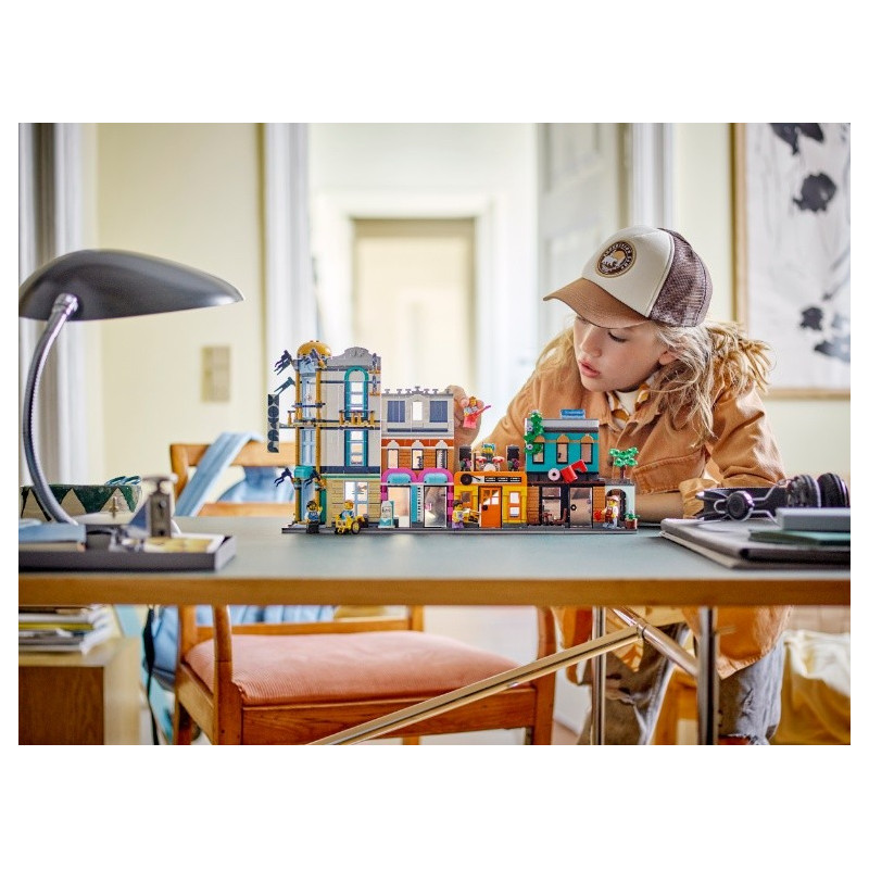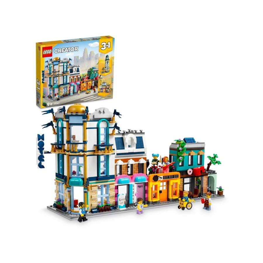 Fanoušci LEGO® od 9 let se mohou těšit na zábavný výlet do města se stavebnicí LEGO Creator 3 v 1 (31141) Hlavní ulice. Obsahuje 4 různé budovy: 3patrový hotel na rohu, obchod s hudbou, na jehož střeše hraje kapela, a kavárnu. Každou budovu můžete připojit a vytvořit tak ulici, nebo je nechat oddělené a hrát si s nimi samostatně. Modely budov inspirují k nekončícímu kreativnímu hraní Malí stavitelé si s touto herní stavebnicí LEGO Creator 3 v 1 užijí stavění 3 různých modelů města. Mohou postavit Hlavní ulici se 4 budovami, přestavět ji na 4patrový secesní obytný dům s parkem nebo na ulici s bránou na trh, fotoateliérem a květinářstvím. Součástí každé stavebnice je také 6 minifigurek pro hraní rolí. Posbírejte 3 sady a můžete spojit 3 jednotlivé modely k vytvoření jedné velké městské scény. Digitální zábava pro stavitele LEGO Děti budou postupovat podle aplikace LEGO Builder a užijí si snadné a intuitivní stavitelské dobrodružství. Můžou přibližovat a otáčet modely ve 3D, ukládat své stavebnice a sledovat svůj postup.
