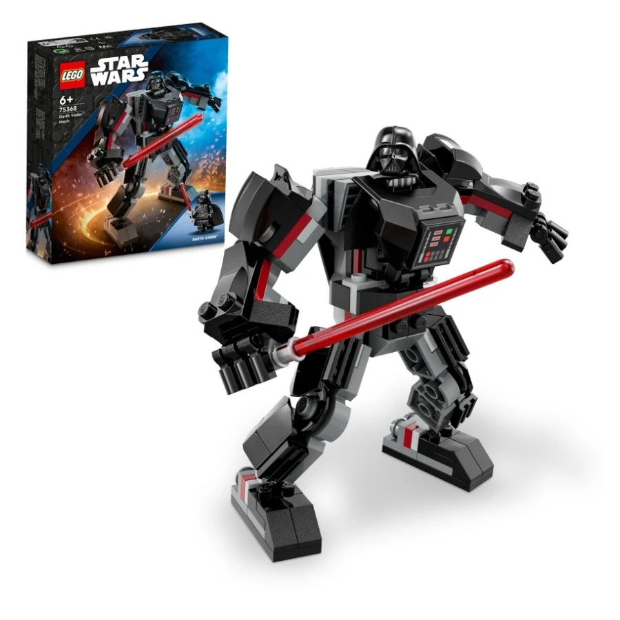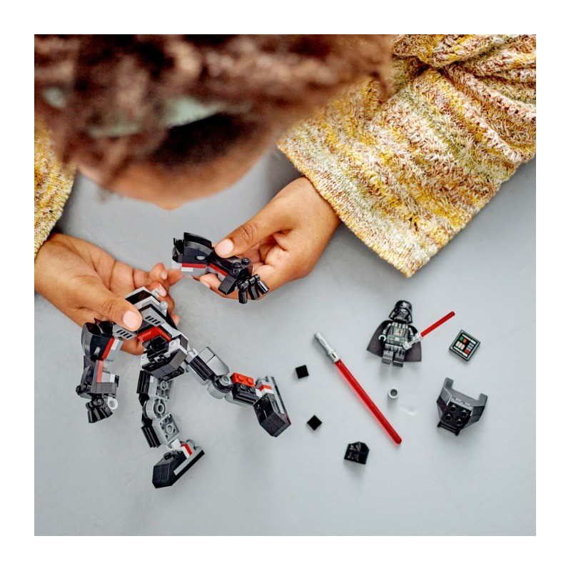 • Polohovatelný robotický oblek – Tento sestavitelný robotický oblek má pohyblivé ruce, paže, nohy a chodidla, otevírací kokpit pro minifigurku, velký červený světelný meč a úchyt na světelný meč minifigurky LEGO® Dartha Vadera
