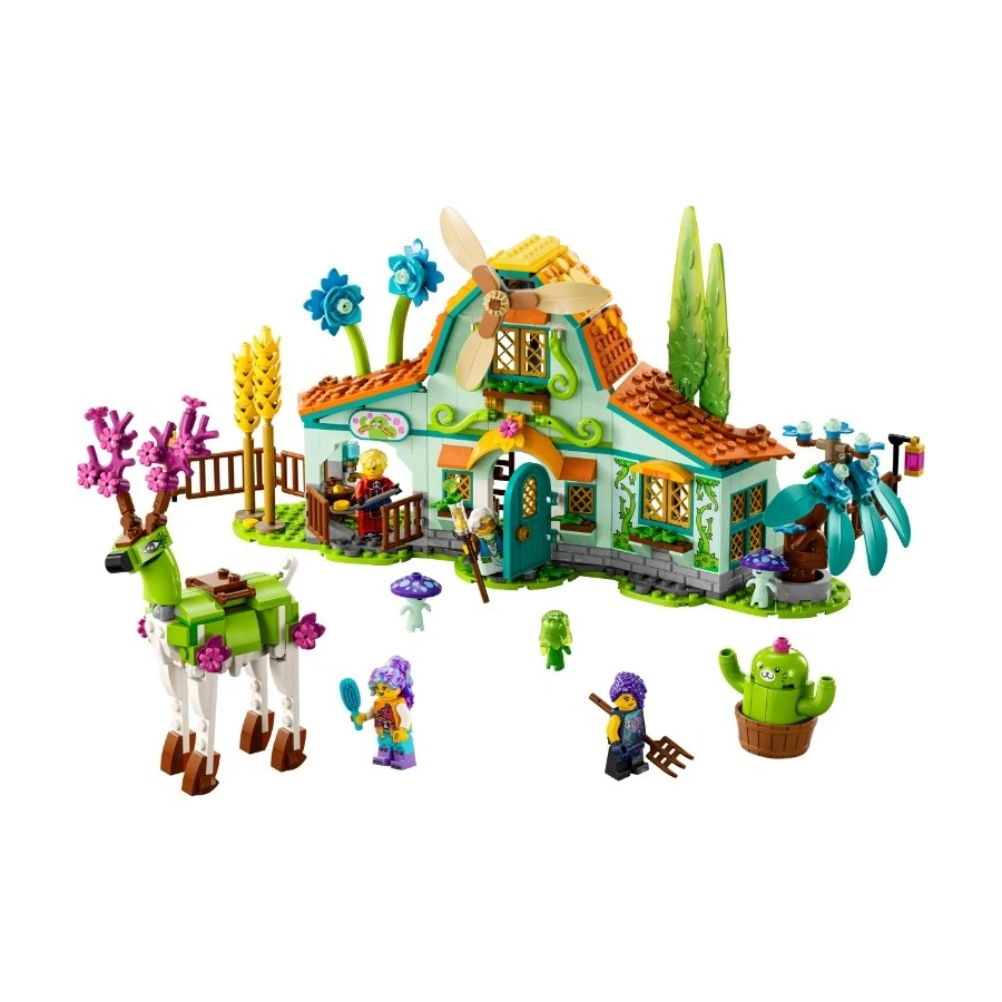 Stavebnice LEGO® DREAMZzz™ (71459) Stáj snových stvoření je inspirována televizním seriálem a zavádí děti od 8 let do kouzelného světa plného přírodních detailů a nových kamarádů, kde se setkají s bájnými stvořeními a postarají se o kouzelné květiny. Je plná úžasných detailů, které podnítí dětskou představivost. Děti nadchne prozkoumávání funkčního větrného mlýnu, stodoly (s otevíracími okny a vraty) a seznamování se s bájnými novými kamarády, jako jsou 2 stvoření ze Světa snů. 1 stavebnice, 2 varianty ke stavění Stavebnice umožňuje 2 varianty ke stavění. Děti mají na výběr mezi ozdobením jelena jako létajícího pegase nebo nádherného ochránce lesa. Užijí si tak dvojnásobnou dobu hraní a rozvíjení kreativity. Fantastické detaily Jelen má pohyblivou hlavu a nohy a snadno se tak přizpůsobí hraní a místo paroží mu můžete nasadit květiny ze stáje. Součástí jsou propracované minifigurky Izzie, Zoey, Coopera a paní Castillové.