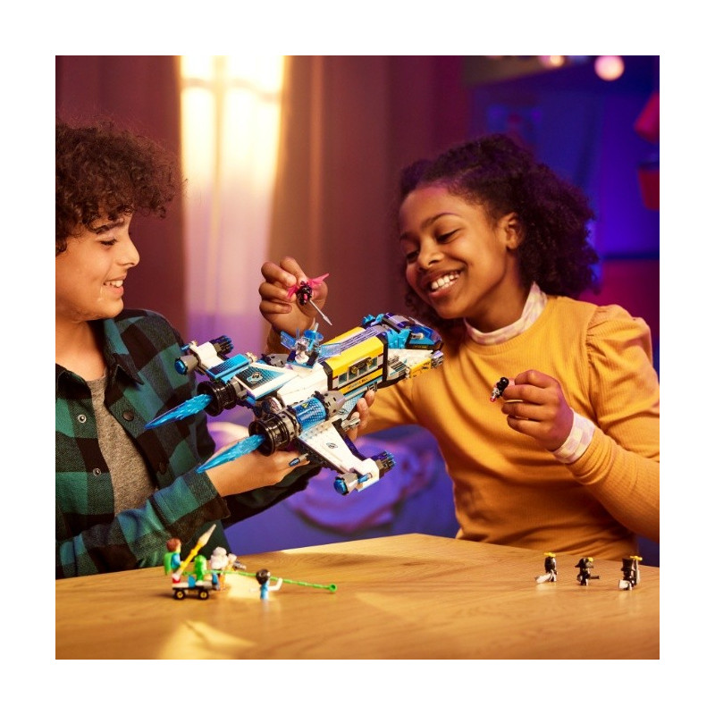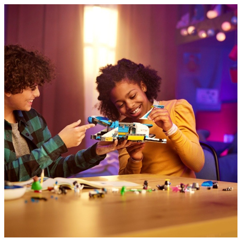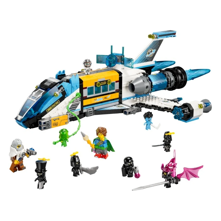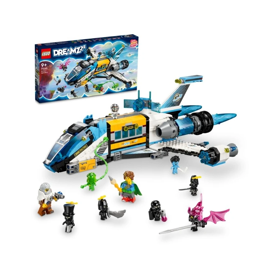 Vyšlete děti od 9 let na divokou jízdu do Světa snů s touto stavebnicí LEGO® DREAMZzz™ (71460) Vesmírný autobus pana Oze. Podobně jako v akčním televizním seriálu mohou děti postavit Vesmírný autobus pana Oze a naplnit ho minifigurkami důležitých postav, jako je Mateo a pan Oz, kteří pomohou zachránit Svět snů před bandou stvoření z nočních můr. 1 vesmírná loď, 2 varianty ke stavění Až děti dokončí základní vesmírný autobus, vyberou si vlastní dobrodružství a doplní model raketami a vystřelovači nebo k němu postaví obří dělo, stíhačku a mini vesmírnou loď. To znamená dvojnásobnou zábavu a dobu hraní. K dalším parádním funkcím patří otevírací kokpit a zadní nákladní rampy a navíc otáčecí trysky a střílecí blastery. Fantastické minifigurky Propracované minifigurky pana Oze a Matea vdechnou dobrodružství život. Děti naloží posádku do vesmírné lodi a připraví se na start!