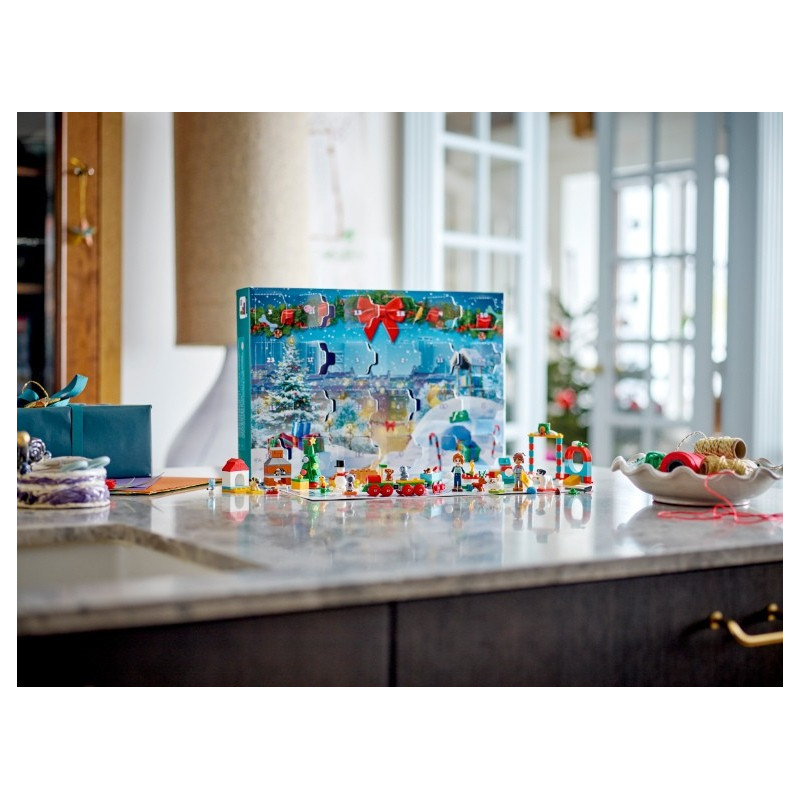 Zpříjemněte fanouškům řady LEGO® Friends od 6 let čekání na Vánoce s Adventním kalendářem 2023 LEGO® Friends (41758). Za každými dvířky najdete minipanenku, mikropanenku nebo mini model, které zpříjemní čekání na Vánoce a dodají mu kouzlo. Kreativní dárek pro milovníky domácích mazlíčků Tento adventní kalendář oslavuje mazlíčky z městečka Heartlake. Děti si zamilují objevování různých zvířátek, minipanenek, mini modelů a doplňků, které společně tvoří výstavku hřiště pro mazlíčky. Mazlíčci si mohou hrát na hřišti nebo se svézt na vánoční mašince. Děti mohou popustit uzdu kreativitě a pomoci Leovi a Autumn ozdobit vánoční stromek. Oslavte Vánoce s přizpůsobitelným modelem Součástí kalendáře je herní podložka a různé moduly, které můžete spojovat a přemisťovat a vytvořit hřiště pro všechny mazlíčky. Děti mohou najít vánoční krabici a ozdobit a přizpůsobit si vánoční stromek barevnými puntíky.