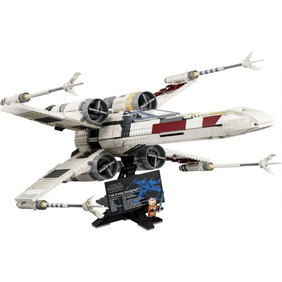 • Určeno na výstavku – Vystavte si stíhačku X-wing na podstavci s plaketkou s technickými informacemi o stíhačce X-wing, na který se navíc také vejde LEGO® minifigurka Luka Skywalkera