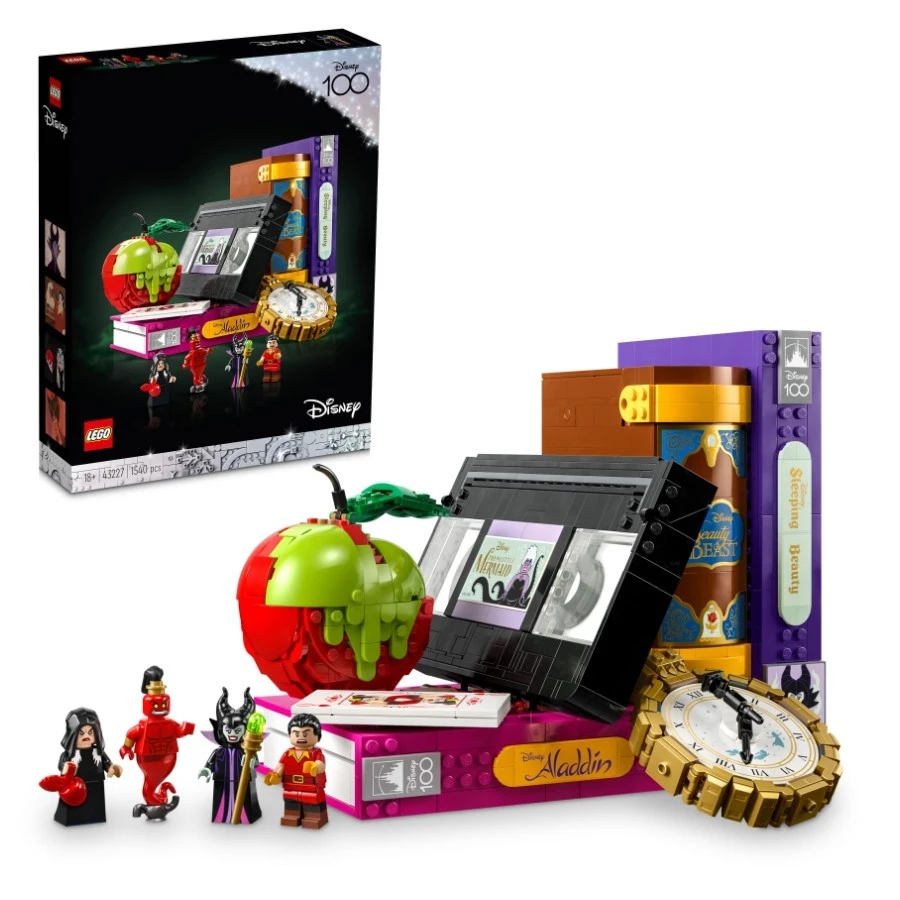 Dejte na odiv svou vášeň pro Disney padouchy se sadou LEGO® ǀ Disney (43227) Symboly padouchů pro dospělé. Tato detailní sběratelská sada obsahuje 2 obaly od VHS kazet z kostek, které odkazují na filmy Aladin a Šípková Růženka od Disney, VHS „kazetu“ Malé mořské víly, knihu představující Krásku a zvíře, srdcovou královnu z Alenky v říši divů, „otrávené“ jablko odkazující na Sněhurku a kapesní hodinky, které představují kapitána Hooka z Petra Pana. Ve stavebnici najdete také spoustu skrytých doplňků a funkcí a bude se skvěle vyjímat jako nostalgická zarážka na knihy. Výstavka sběratelských předmětů Disney Tato prémiová sběratelská sada LEGO obsahuje 4 známé záporné postavy z kultovních filmů od studia Disney, včetně Zloby, Zlé královny v převleku ze Sněhurky, Gastona z Krásky a zvířete a džina Jafara z Aladin,a a poslouží jako jedinečný a nepřehlédnutelný dárek s motivem Disney na výstavku.