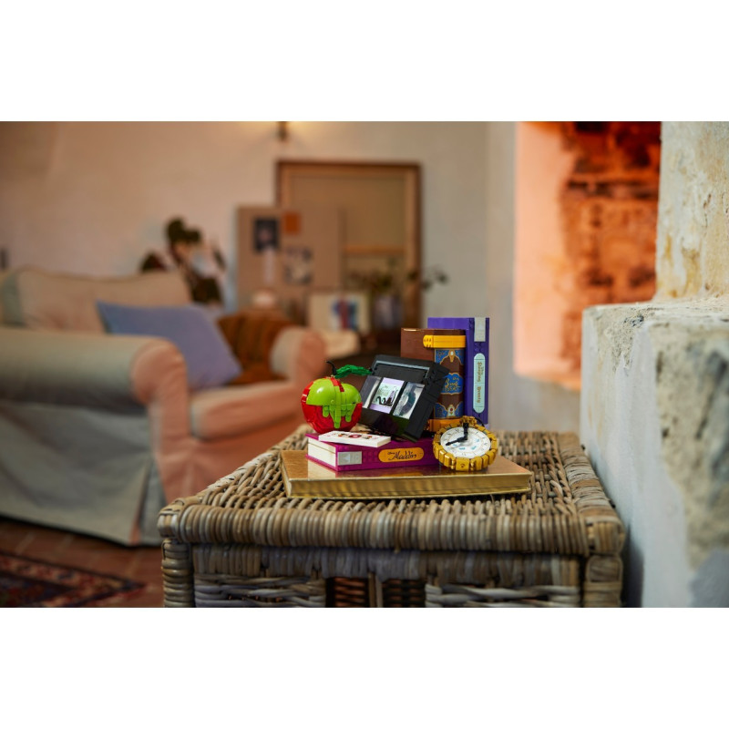 • Stavějte a vystavujte – Stavebnice plná sběratelských předmětů z filmů studia Disney se skládá z 1 540 dílků, ze kterých můžete postavit řadu předmětů, včetně 2 „obalů“ od VHS kazet, „videokazetu“, otrávené jablko, kartu, knihu a kapesní hodinky