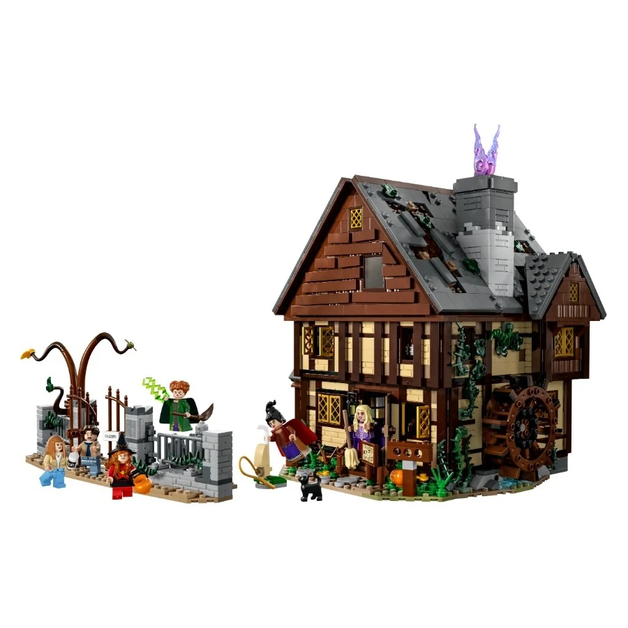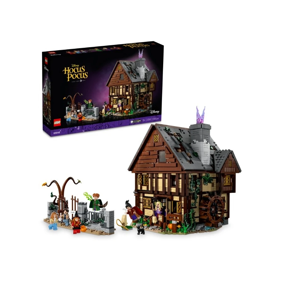 Zavzpomínejte si na legrační film Disney Hokus pokus s touto kouzelnou stavebnicí. Postavte Chatku sester Sandersonových i se zahradní brankou, plotem a hřbitovem. Po otevření zadní části a střechy chatky můžete objevovat každý ďábelský detail, ať už je to muzejní obchůdek nebo ložnice čarodějek plná netopýrů. Otočte vodním kolem, aby z komína stoupal růžový „kouř“, zapalte oheň pod kotlíkem a mnoho dalšího!