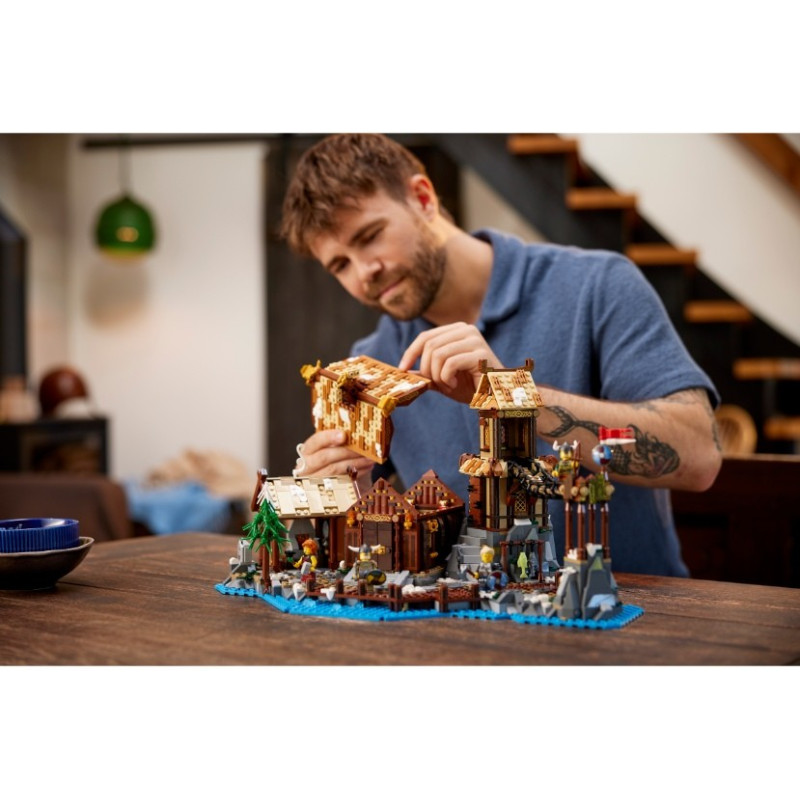 Vraťte se zpátky v čase a okuste život ve vikingské vesnici. Postavte kovárnu, ve které kovářka ková helmy, zbraně a meče. Navštivte dlouhý dům, kde sídlí náčelník na trůnu a podávají se hostiny. Vytvořte most ke strážní věži a prozkoumejte jeskyni. Tento propracovaný model vhodný na hraní i na výstavku zaručeně udělá radost milovníkům historie, kteří mají slabost pro dobu vikingů.