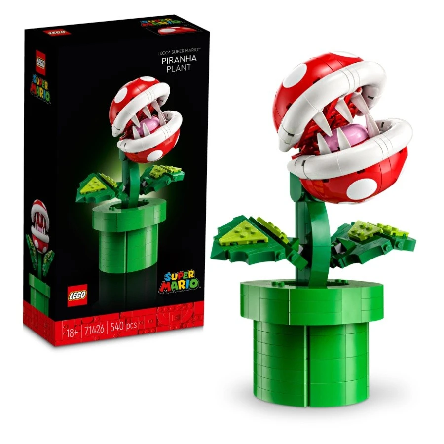 • Sestavitelný výstavní model Piraňové rostliny (71426) z řady Super Mario™ – Užijte si dobrodružství při stavění detailních prvků této kultovní postavy ze světa Super Mario™ v provedení z kostek LEGO®