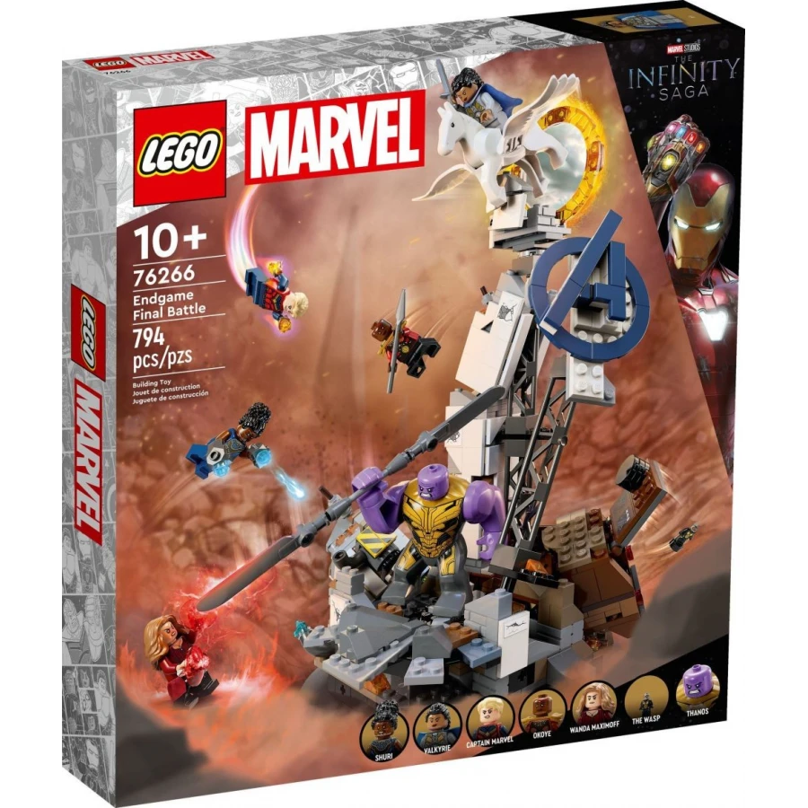 Děti se v této herní stavebnici plné inovativních funkcí a přesných detailů z filmu přidají ke kultovním postavám. Součástí je 7 postav – Kapitánka Marvel, Okoye, Wanda Maximoff, Shuri, Valkýra, Thanos a Wasp. Akce se odehrává v ruinách budovy Avengers. Autenticky propracované bitevní pole obsahuje mnoho míst k připojení minifigurek a navíc skrytá překvapení, která budou děti objevovat: štít Captaina Ameriky, Thorovo kladivo, kámen času a krysu otevírající portál. Zatáhnutím za integrované rukojeti se bitevní pole rozšíří pro ještě více dobrodružství. Stavitelé si také mohou užít porci digitální zábavy navíc pomocí zábavné a intuitivní aplikace LEGO Builder – mohou model přibližovat, otáčet ve 3D a sledovat svůj pokrok.