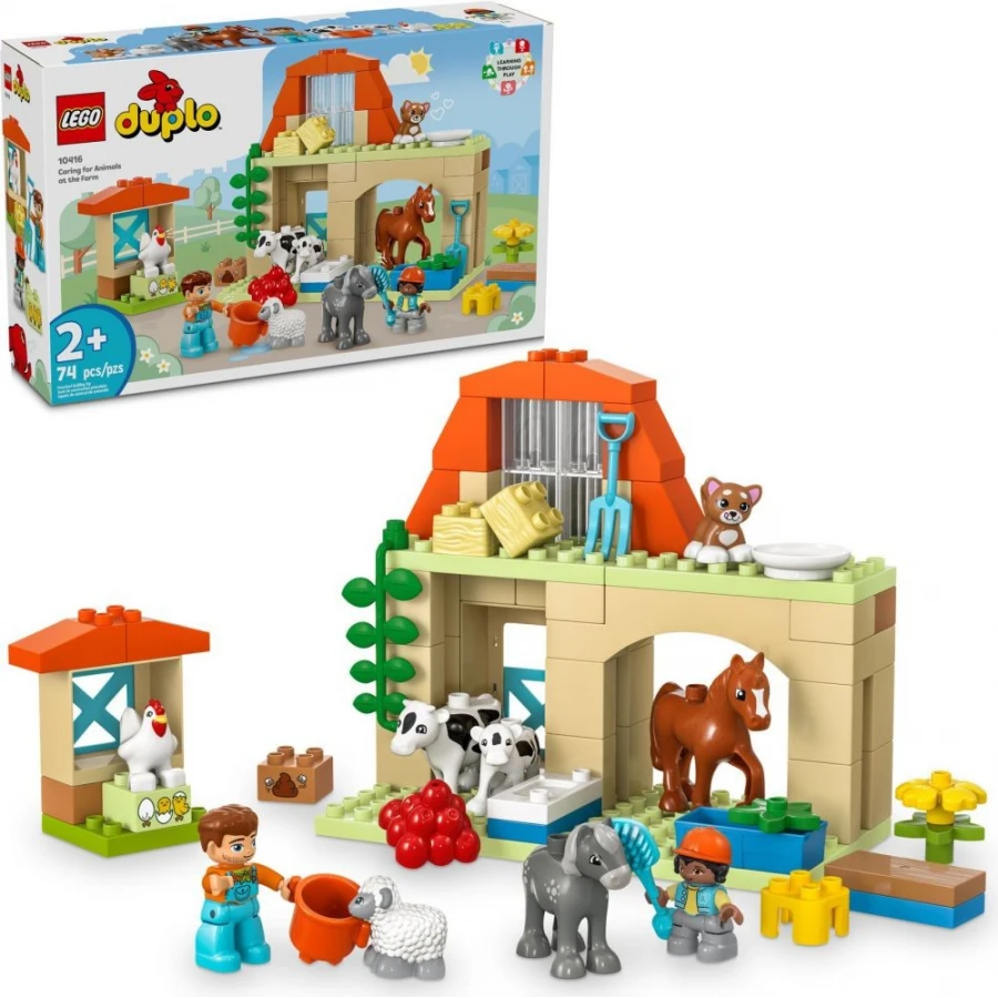 Znáte malého stavitele, který miluje stavebnice s prvky farmaření? LEGO® DUPLO® Město (10416) Péče o zvířátka na farmě je pro něj jako stvořená! Tato sada je vhodná pro děti od 2 let a najdete v ní hned 8 figurek zvířat LEGO® DUPLO®, včetně koníka, ovečky, kravičky a slepičky. Zaručeně potěší každé batole se zájmem o zvířátka a o přehrávání reálných scénářů. Tato hračka pro batolata s řadou funkcí v dětech probudí malé pečovatele. Stavebnice okouzlí celou rodinu a dospělí svým ratolestem předvedou, jak se starat o zvířata a jak je krmit. Figurka farmáře ukáže postavě dítěte, jak umýt jablka, kterými nakrmí kravičku a její telátko. V kurníku se slepička stará o svá kuřátka. Děti se vydají na projížďku s figurkou koníka a nakrmí ji senem. Tato vzdělávací hračka obsahuje barevné kostky a dílky na stavění speciálně navržené tak, aby upoutaly pozornost dětí, které se s radostí pustí do jejich prozkoumávání a skládání. Malí stavitelé při hraní navíc rozvíjejí jemné motorické dovednosti a schopnost řešit problémy.