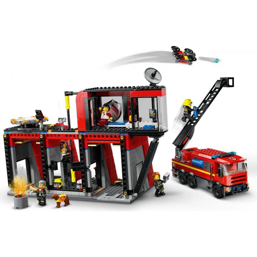 Přidejte se k posádce nejskvělejší hasičské stanice v LEGO® City. Plánujte záchranné mise v nejvyšším patře moderního řídicího centra. Požární tyč umístěte do oblasti vybavení a do strojoven 1 a 2. Do zadní části hasičského vozu namontujte žebřík nebo 360° hasicí přístroj. Pak vypusťte z helipadu RC dron, seberte věrného hasičského psa a vydejte se za dalším akcí nabitým hasičským dobrodružstvím!