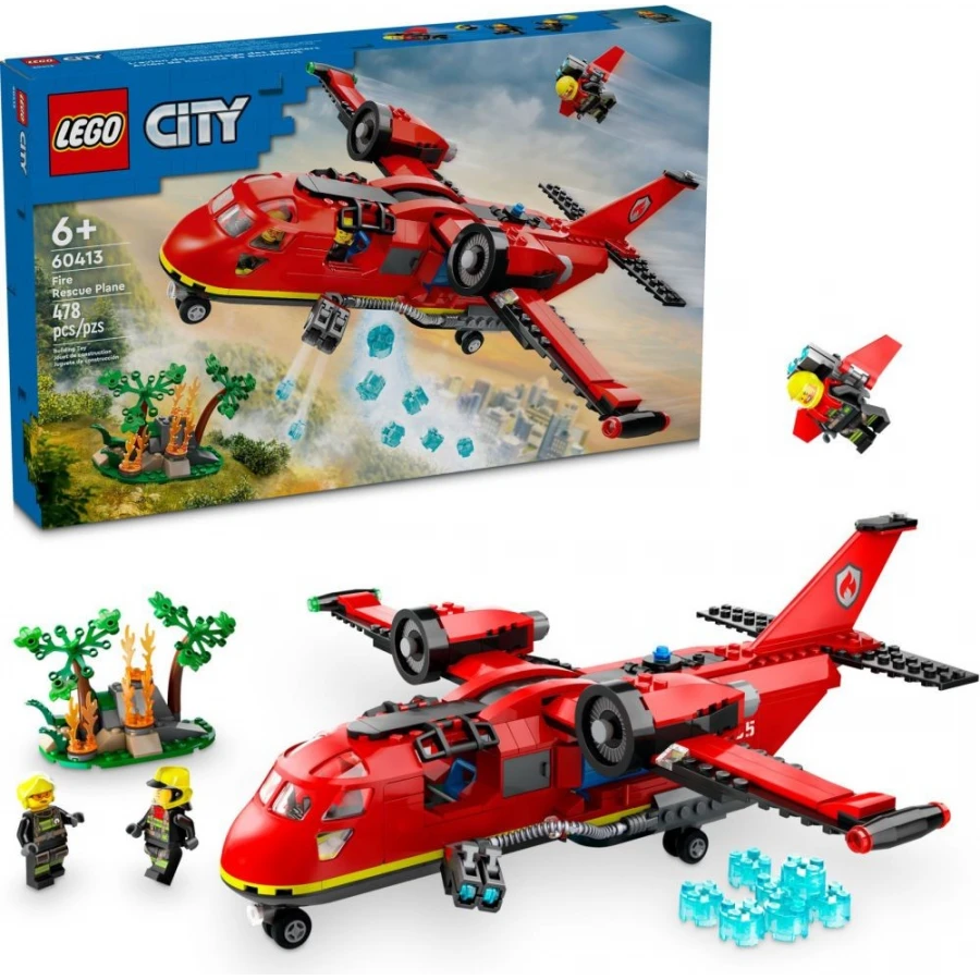 Působivá hasičská hračka pro děti od 6 let – Stavebnice 60413 LEGO® City Hasičské záchranné letadlo s realistickými funkcemi, včetně funkce vypuštění vody a 2 odpalovačů vodních prvků. Letadlo se dvěma motory má také otvírací zadní nákladové dveřea dvojitý kokpit, dále obsahuje minifigurky pilota, obsluhy hasicího přístroje a hasiče s jetpackem. Nechybí ani scéna lesního požáru pro hru nabitou akcí. Stavebnice se záchranářskou hračkou obsahuje srozumitelný tištěný návod na stavění a podrobný 3D návod v aplikaci LEGO Builder. Ta dětem umožňuje při stavění přibližovat a otáčet modelem pro lepší vizualizaci ze všech úhlů. Stavebnice LEGO City Fire přináší hračky plné úžasných funkcí pro neomezené hraní na zemi, ve vzduchu i na vodě. Děti mohou tuto stavebnici s hasičským letadlem přidat k ostatním stavebnicím z řady Lego City (prodávané samostatně) a užívat si ještě úžasnější dobrodružství!