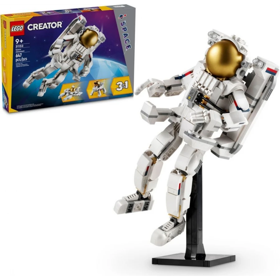 • 3 vesmírné hračky LEGO® v 1 krabici – Děti od 9 let, které milují vesmír, si se stavebnicí LEGO Creator 3 v 1 Astronaut postaví a přestaví 3 sady modelů ze stejných kostek