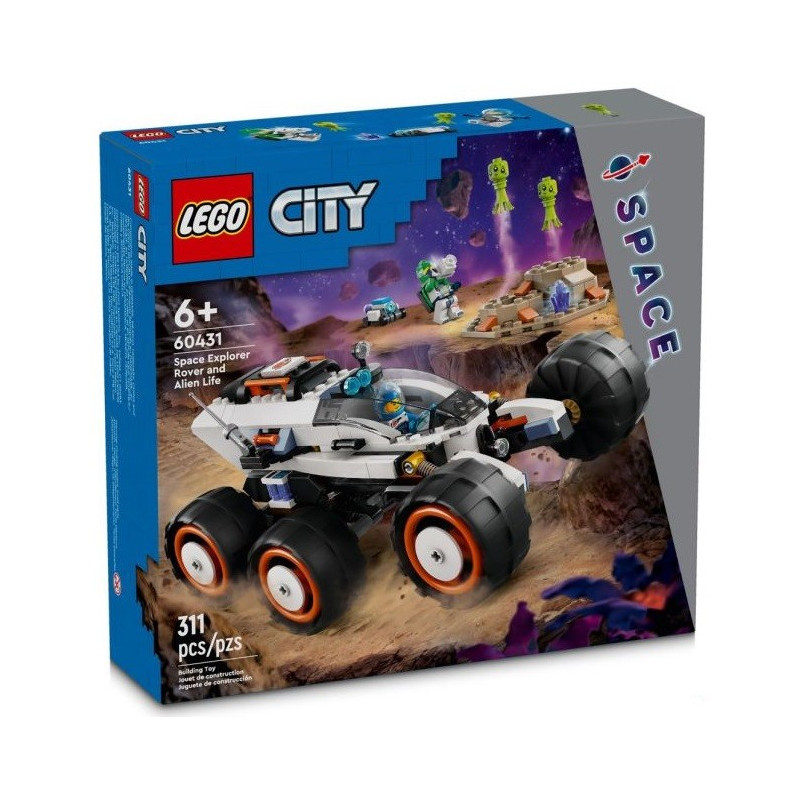 S touto stavebnicí 60431 LEGO® City Průzkumné vesmírné vozidlo a mimozemský život se mohou děti od 6 let pustit do projíždění nových světů. Odolné vozidlo pro průzkum vesmíru je vybaveno 6 velkými pneumatikami a pokročilým odpružením pro jízdu po kamenitém terénu planety. Děti se mohou připojit k posádce, která mapuje povrch planety a objevuje podivné gejzíry tryskající páru a mimozemský život. Součástí této zábavné stavebnice jsou 2 minifigurky vesmírné posádky, robot a figurky mimozemšťanů. Vezměte vesmírné průzkumníky na vzrušující dobrodružství! Stáhněte si aplikaci LEGO Builder a vykročte do nového světa zábavného stavění, kde si děti mohou přibližovat a otáčet modely ve 3D, sledovat svůj pokrok a prozkoumávat nové stavebnice LEGO. Vesmírné hračky LEGO City jsou skvělým dárkem ke každé příležitosti. Obsahují realistická vozidla, propracované stavby a inspirativní postavy a propojují fantazii s realitou pro nápadité hraní bez hranic. Děti mohou přidat tuto průzkumnou vesmírnou stavebnici k ostatním z řady LEGO City s vesmírnou tematikou (prodávané samostatně) a užívat si ještě epičtější dobrodružství.