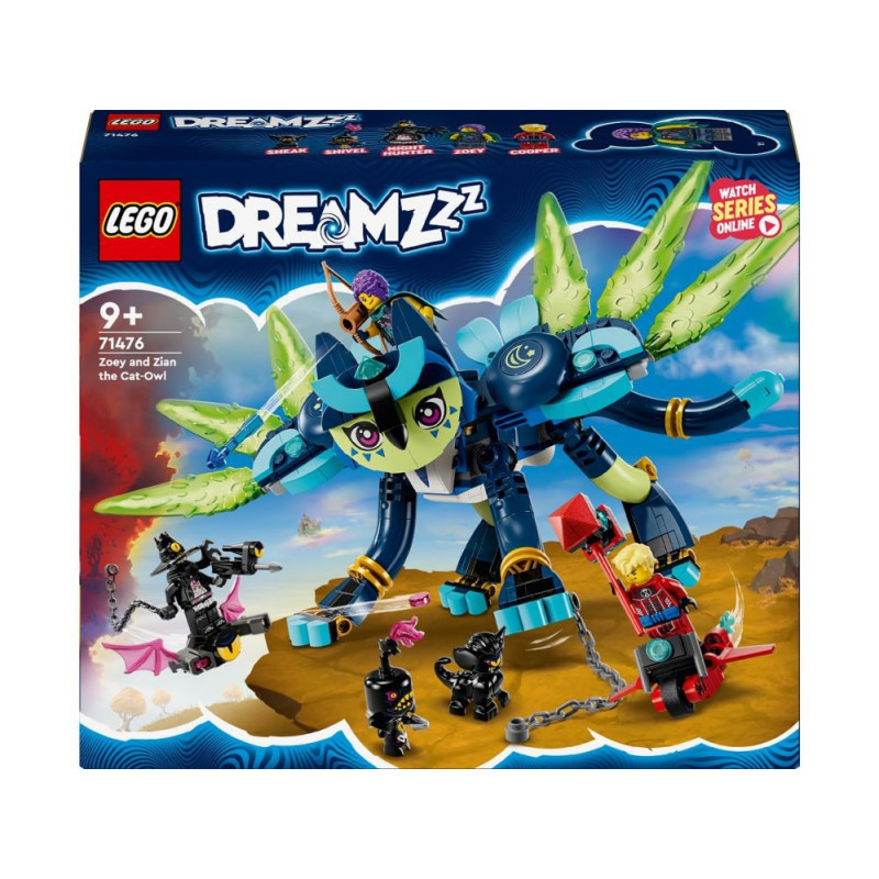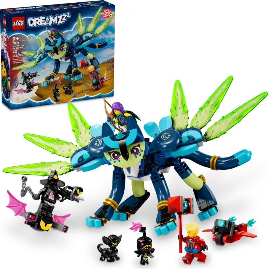 Zažehněte jiskru dětské představivosti se stavebnicí LEGO® DREAMZzz™ (71476) Zoey a kočkosova Zian. Stavebnice je inspirovaná televizním seriálem a je vhodná pro děti od 9 let, které se s ní vydají do Světa snů a pomohou hrdince Zoey zachránit Ziana před zlým Nočním lovcem. Děti si vychutnají dobrodružství ve Světě snů s návodem na stavění vedeným příběhem. Stavebnici se možné postavit 2 způsoby, takže se herní doba zdvojnásobí. Malí stavitelé si poskládají Ziana jako kočkosovu s křídly, která odletí od nočních můr, nebo kočkopáva s nádherným ocasem, se kterým nepřátele odežene. Akční stavebnici vdechnou život 3 minifigurky: Zoey, Cooper a Noční lovec s poskoky Sneakem a Snievelem. Součástí sady jsou také parádní doplňky, jako je Zoeyin luk a Cooperova létající motorka, a děti si s ní přehrají své oblíbené scény a prožijí vlastní neuvěřitelné příběhy.
