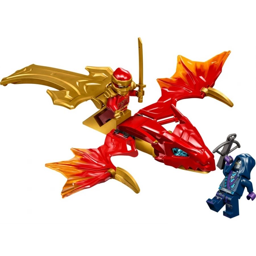 Připravte se na velkolepé bitvy nindžů – drak Kaie se utká se stráží s vlčí maskou! Umístěte Kaie na hřbet draka, sklopte drakův ocas a sledujte, jak se Kai nabije dračí silou! Dokáže uštědřit ránu zlé stráži s vlčí maskou a vyhnout se jeho samostřílu!? Zachrání nový svět NINJAGO®? To záleží jen na vás…