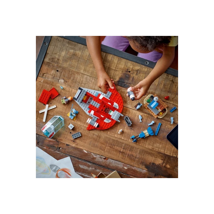 • Snadné sestavení – Sestavitelný model lodě Rudý Ohnistřáb obsahuje začátečnickou podložku pro snadné sestavení a kokpit s místem pro všechny 3 postavy. Do zadní části lodě se navíc vejde spídrová motorka