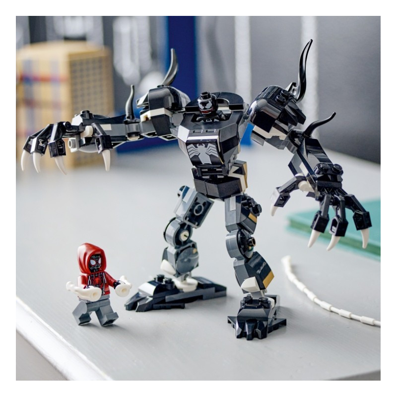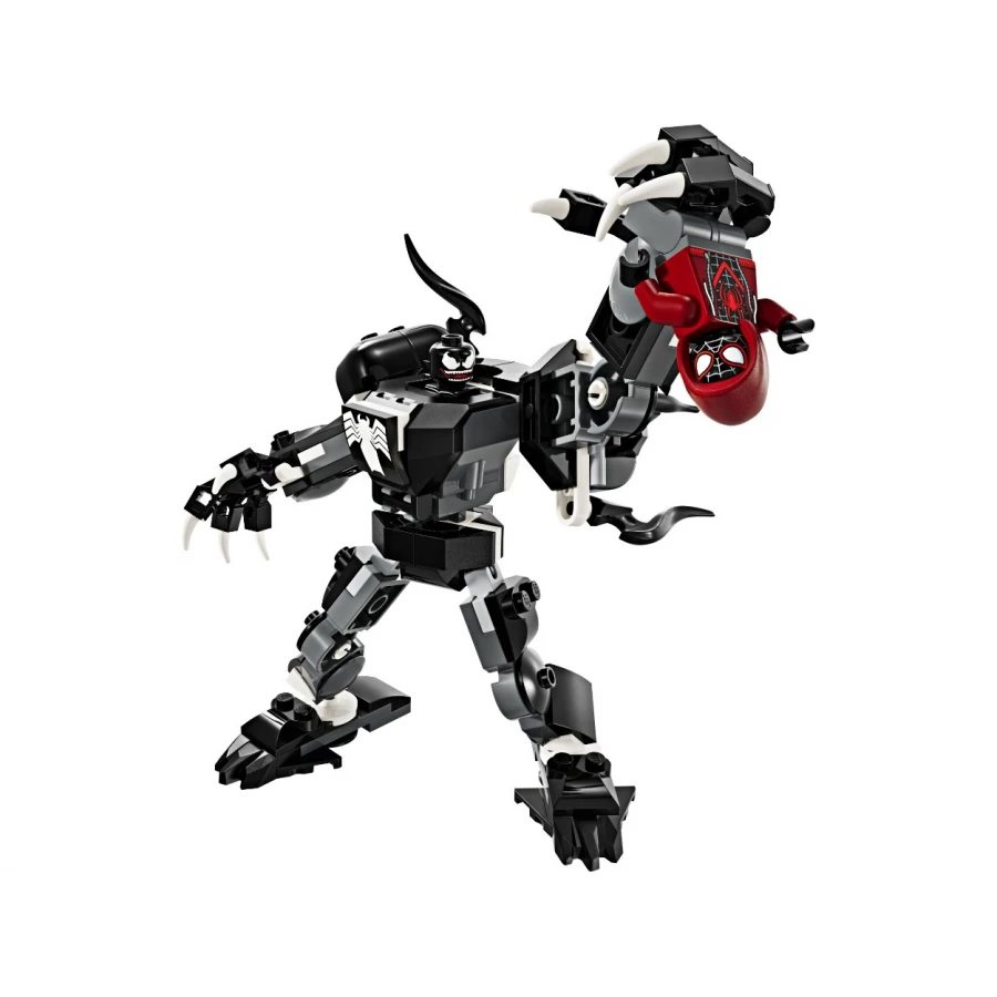 Otevřete hrudník robotického brnění, umístěte dovnitř Venoma a přeměňte mimozemského symbionta na silný bojový stroj! Když se Miles Morales zhoupne do akce pomocí svých ručních vystřelovačích pavučin a pavučinového „lana“, pohyblivé ruce a nohy robotického brnění ho popadnou svými drápy. Miles se zhoupne na svém robotickém nepříteli a unikne. Se stavebnicí Venom v robotickém brnění vs. Miles Morales akční bitvy nemají konce!
