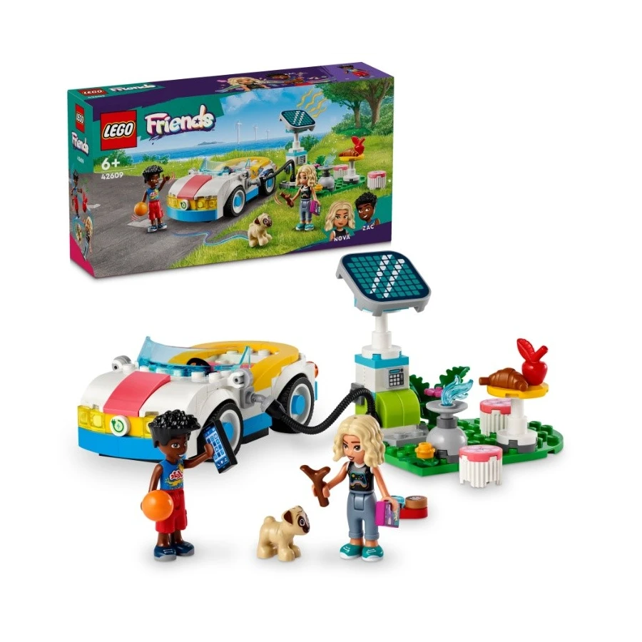 Vydejte se na nápaditá dobrodružství za volantem se stavebnicí LEGO® Friends (42609) Elektromobil s nabíječkou pro děti od 6 let. Součástí stavebnice je model nabíječky, 2 postavy, doplňky a figurka pejska. Zac a Nova si spolu pochutnávají na obědu u nabíječky na solární pohon. Auto lze propojit s nabíječkou pomocí hubice. V autě jsou místa pro minipanenky a sedadlo pro psa Danga. Nechybí ani otevírací kapota s místem na ukládání doplňků. U nabíjecí stanice stojí stůl a dvě židle, kde si Zac a Nova pochutnají na pikniku a přichystají misku s krmivem a vodou pro Danga. Tato stavebnice představuje zábavný dárek k narozeninám pro děti, které milují vyprávění. Aplikace LEGO® Builder děti provede intuitivním stavitelským dobrodružstvím. Umožňuje jim přibližovat a otáčet modely ve 3D, ukládat stavebnice a sledovat postup.