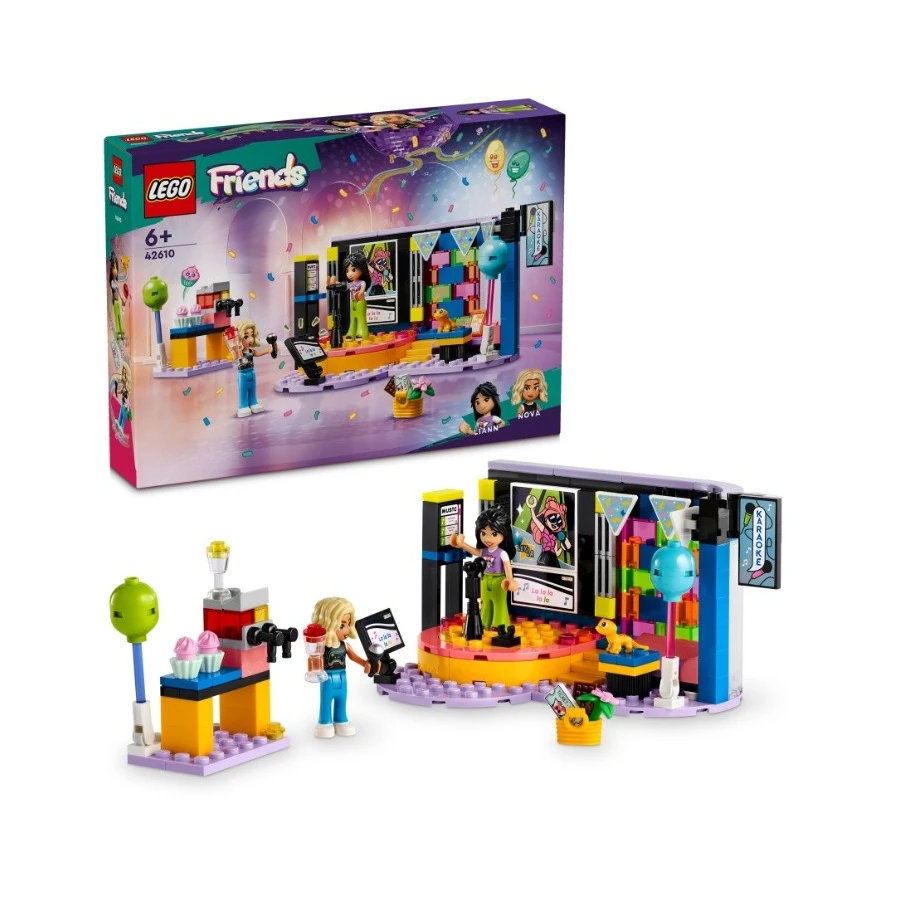 Stavebnice LEGO® Friends (42610) Karaoke párty představuje úžasný dárek pro děti od 6 let, které milují zpěv a vyprávění. Součástí je otáčecí pódium, mikrofony, odpočinková zóna a model výrobníku ledové tříště pro pořádnou narozeninovou karaoke párty! Nechybí 2 postavy LEGO Friends s výrazy zpěvu navíc, figurka gekona s spousta doplňků. S touto stavebnicí se děti vydají na Lianninu oslavu narozenin, kde rozpohybují pódium pomocí ozubeného kola. Budou předstírat, že postavičky zpívají do mikrofonu, a navíc jim vymění tváře za výrazy zpěvu. Kamarádi si odpočinou s chutnou ledovou tříští a cupcaky. Nova dokonce přinesla narozeninový dárek pro Liann. Děti rozhodnou o tom, jak bude příběh pokračovat! Objevte další stavebnice pro děti ze světaLEGO Friends, které nabízí mnoho příležitostí k vyprávění příběhů inspirovaných reálným světem.