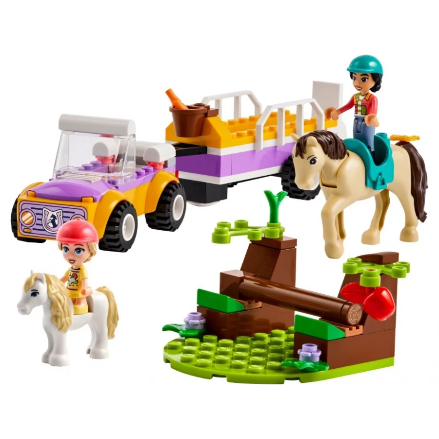 • Stavebnice s figurkami koní – Součástí této sady pro děti od 4 let je sestavitelný model auta a přívěsu pro koně, minipanenky Liann a Zoyi, figurka koně, poníka a doplňky