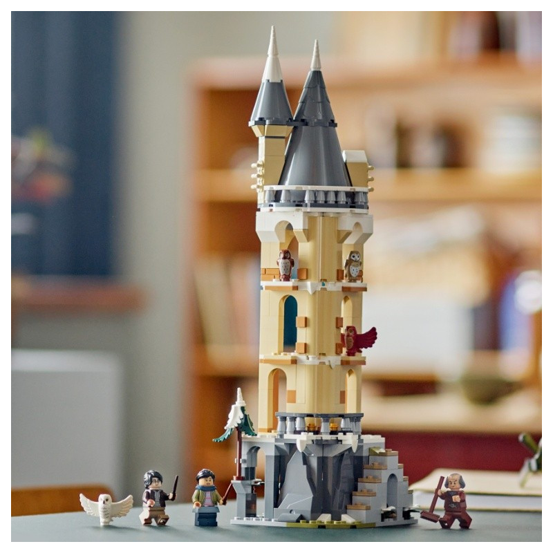 • Propracovaná stavebnice pro děti – Součástí sovince, ve kterém jsou umístěny sovy z bradavické školy, jsou okenní římsy, na kterých sovy odpočívají, socha sovy a doplňky pro péči o sovy