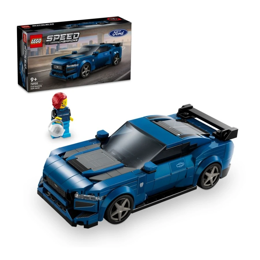 Stavebnice LEGO® Speed Champions (76920) Sportovní auto Ford Mustang Dark Horse je úchvatná replika vozidla ikonické americké automobilky. Děti od 9 let si toto modré auto s radostí postaví, vystaví, pustí se s ním do hraní a zařadí jej do své sbírky. Model vozidla z kostek LEGO se pyšní řadou autentických detailů inspirovaných skutečnou předlohou: Zadní křídlo, jedinečná mřížka, výfuky, loga Ford a propracovaný interiér s řadicí pákou a přístrojovou deskou. Součástí je také odnímatelná střecha a minifigurka řidiče, kterou děti usadí dovnitř a vydají se s ní na akční dobrodružství. Děti i vášniví fanoušci aut si se stavebnicemi Speed Champions postaví repliky ikonických vozů. Postaví si kvalitní modely z kostek LEGO s řadou působivých detailů. Každý model lze postavit pomocí aplikace LEGO® Builder, která vám a vašemu dítěti ukáže snadnou a intuitivní cestu za stavitelským dobrodružstvím.