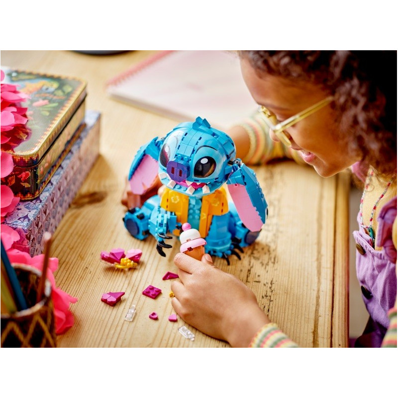 Hrajte si s tím nejúžasnějším mimozemšťanem na světě: Stitchem! „Ohana“ znamená „rodina“ a právě tu tato stavebnice LEGO® ǀ Disney oslavuje. Postavte si rozkošného Stitche v havajské košili a vezměte ho na zmrzlinu. Poté upravte Stitchův výraz – hýbejte jeho ušima nahoru nebo dolů, hlavu otočte dopředu nebo na stranu a rozhodněte se, jestli bude v ruce držet zmrzlinu a za uchem mít svou oblíbenou květinu. Aloha!