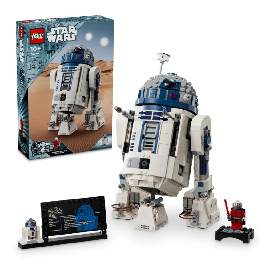 Děti si se stavebnicí R2-D2™ (75379) postaví toho nejmilovanějšího droida v celé galaxii Star Wars™ z kostek LEGO®. Tato hravá stavebnice pro děti od 10 let má spoustu autentických funkcí a malí stavitelé si s ní mohou přehrávat klasické scény i vlastní originální příběhy. Hlavu R2-D2 lze otáčet o 360 stupňů a součástí je také třetí odnímatelná noha pro pohyb, odnímatelný periskop a nástroje. Sestavte si nápaditý výstavní model – součástí stavebnice je také figurka LEGO droida R2-D2, speciální figurka Dartha Malaka se světelným mečem na podstavci na vystavení k 25. výročí LEGO Star Wars a cedulka s informacemi o R2-D2. Stavebnice představuje skvělý tip na dárek pro fanoušky Star Wars a sběratele modelů Star Wars. Součástí je intuitivní návod na stavění. V aplikaci LEGO Builder najdete digitální nástroje pro přibližování a otáčení modelů, s nimiž bude celý zážitek ještě výjimečnější.