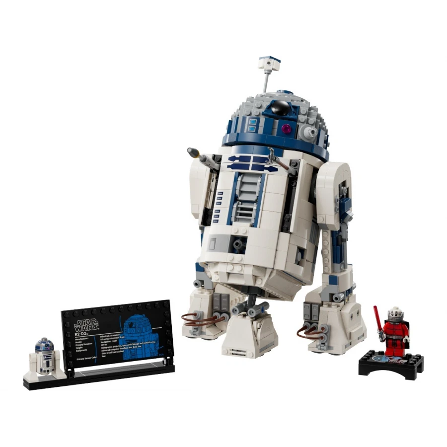 Přineste si domů nejmilovanějšího droida ve světě Star Wars v podobě tohoto hravého modelu. Otočte hlavu R2-D2 a až bude čas se vydat na cestu, připojte k němu třetí nohu. Připevnit k němu můžete také slavný radar a nástroje. Pak se hotovým dílem pochlubte a nezapomeňte připojit informační cedulku o R2-D2, figurku LEGO® R2-D2 a speciální figurku Dartha Malaka na podstavci na vystavení k 25. výročí LEGO Star Wars.