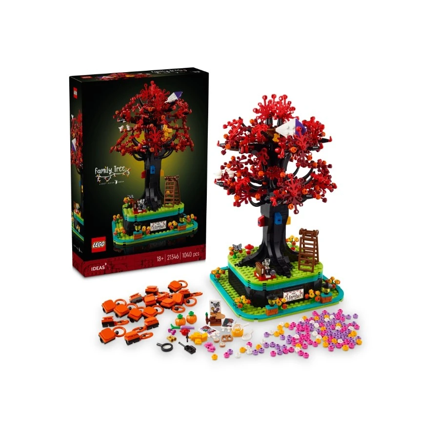 Postavte si společně ozdobnou stavebnici LEGO® Ideas (21346) Rodinný strom, připomeňte si nostalgické okamžiky a vytvořte jedinečný bytový doplněk. Součástí sestavitelného rodinného stromu je 16 visících úchytek na malé fotografie, zprávy a jiné památeční předměty. Skrytý úložný prostor pod stromem překypuje doplňky. Vyberte si listí podle ročního období a umístěte do koruny stromu letadélko a papírového draka. Nezapomeňte také na 4 ptačí budky, 2 figurky ptáčků a motýla. Nechybí ani dílky květin, které můžete umístit na základnu v barvě trávy, a spousta dalších předmětů, díky nimž můžete scénu upravit podle sebe – například dalekohled, prvky jídla, kolečkové brusle a lupa. V krabici i v aplikaci LEGO® Builder najdete podrobný návod k sestavení, díky kterému si tento odpočinkový stavitelský zážitek můžete vychutnat i s rodinou a přáteli.