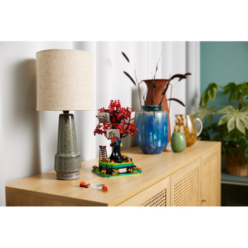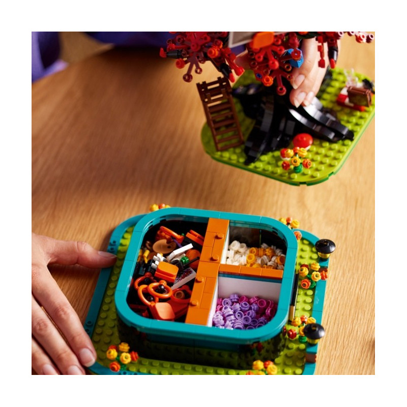 Podělte se o své nejhezčí vzpomínky prostřednictvím modelu Rodinný strom z řady LEGO® Ideas. Vystavte na stromu malé fotografie, poznámky a jiné památeční předměty z papíru. Vyberte si z úložného prostoru pod stromem listí podle ročního období a květiny. Do koruny stromu umístěte ptáčky, motýla, papírového draka a letadélko. Nezapomeňte scénu doplnit také žebříkem, malířským stojanem, košíkem, dalekohledem a dobrotami.
