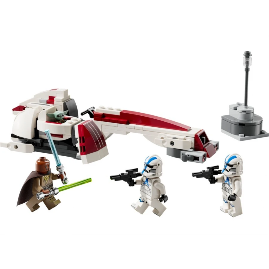 • Propracovaný model Star Wars™ spídru BARC – Součástí je kokpit pro minifigurku, 2 vystřelovače a odnímatelný postranní vozík s prostorem pro Groguův vznášející kočárek