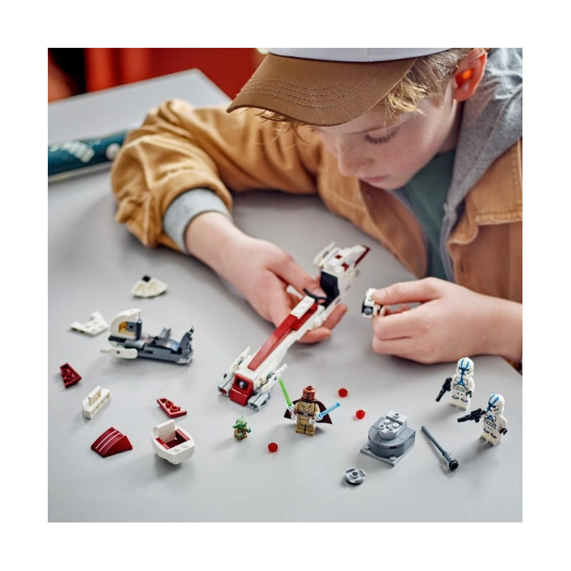• Stavějte a hrajtesi – Tento model spídru BARC s postranním vozíkem Star Wars™ se skládá z 221 dílků LEGO® a měří přes 4 cm na výšku, 19 cm na délku a 9 cm na šířku