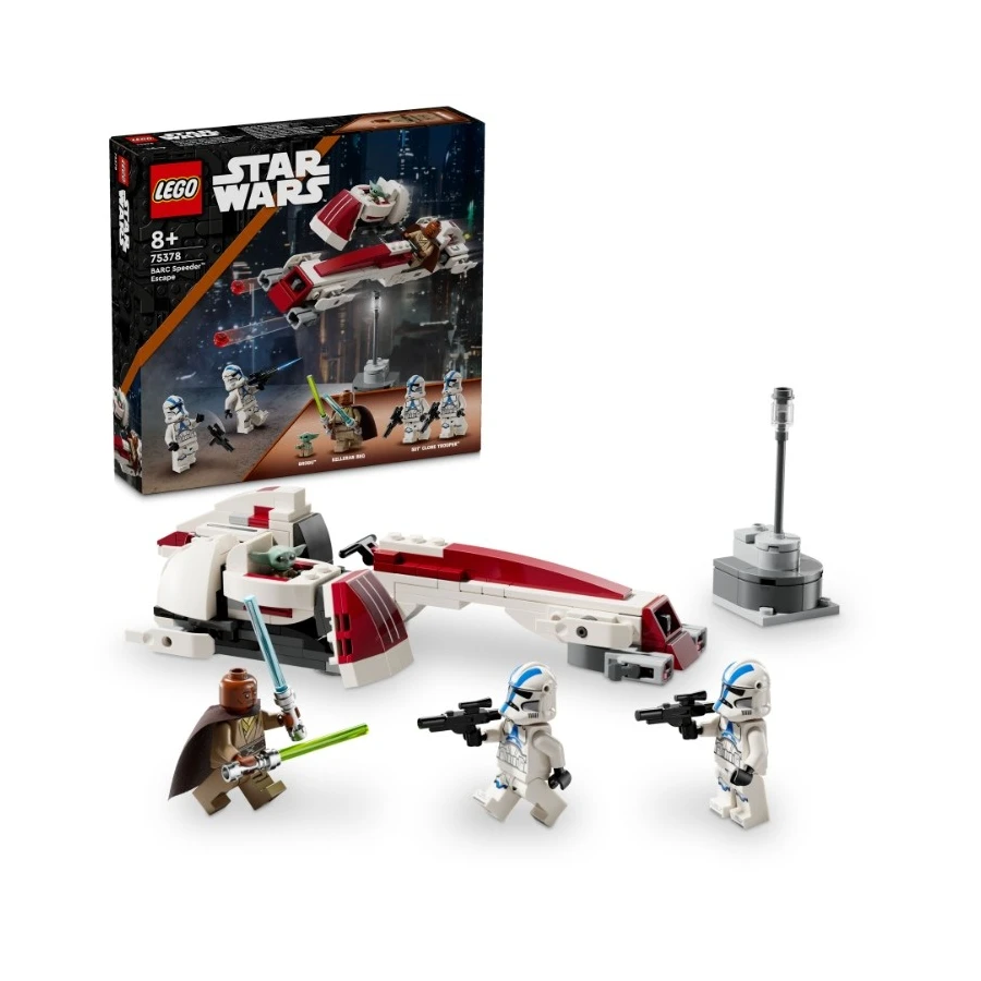 Připomeňte si scénu Útěku na spídru BARC z 3. řady seriálu Star Wars: The Mandalorian s touto jedinečnou stavebnicí LEGO® Star Wars™ (75378). Model představuje skvělý dárek pro děti, fanoušky a sběratele Star Wars od 8 let a najdete v něm spídrovou motorku s postranním vozíkem z kostek LEGO. Součástí spídru je kokpit pro minifigurku a 2 vystřelovače a do odnímatelného postranního vozíku lze připojit vznášející se kočárek Grogua. Ve stavebnici také najdete malý model scenérie a 3 minifigurky LEGO: Kellerana Beqa s modrým a zeleným světelným mečem a 2 klonované vojáky z 501. legie s blastery, a navíc figurku LEGO Grogua (kterého fanoušci někdy označují jako malého Yodu), se kterými se můžete těšit na kreativní hru plnou akce. Součástí tétofantasy stavebnice je podrobný návod. Děti si také mohou stáhnout aplikaci LEGO Builder s nástroji pro přibližování a otáčení modelů, které jim přinesou ještě lepší stavitelský zážitek.