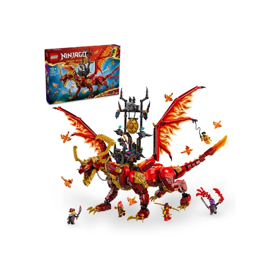 Děti od 12 let si připomenou vzdušná dobrodružství z 2. řady televizního seriálu NINJAGO® Dračí povstání s úchvatnou stavebnicí Zdrojový drak pohybu (71822). Model představuje největšího draka z kostek LEGO® všech dob a má pohyblivé nohy, ocas, boky, čelist, hlavu, krk a velká křídla. Na zádech má sedlový trůn a 6 menších dračích duší. Součástí této dračí stavebnice je 6 minifigurek, se kterými se děti pustí do strhujících bitev: Nindža válečníky Kaie, Wyldfyre a Arina (s parádními meči a braněmi) a zlotřilá trojice lord Ras, Jordana a válečník s vlčí maskou, kteří mají vlastní zbraně. Ve stavebnicích z řady LEGO NINJAGO se sestavitelnými hračkami s nindžovskou tematikou najdete robotické obleky, vozidla a chrámy a fanoušci nindžů si užijí hodiny zábavného hraní se svými oblíbenými hrdiny. Aplikace LEGO Builder vám a vašemu dítěti ukáže snadnou a intuitivní cestu stavitelským dobrodružstvím pro skládání modelu. Přibližujte a otáčejte modely ve 3D, ukládejte si stavebnice a sledujte svůj postup.