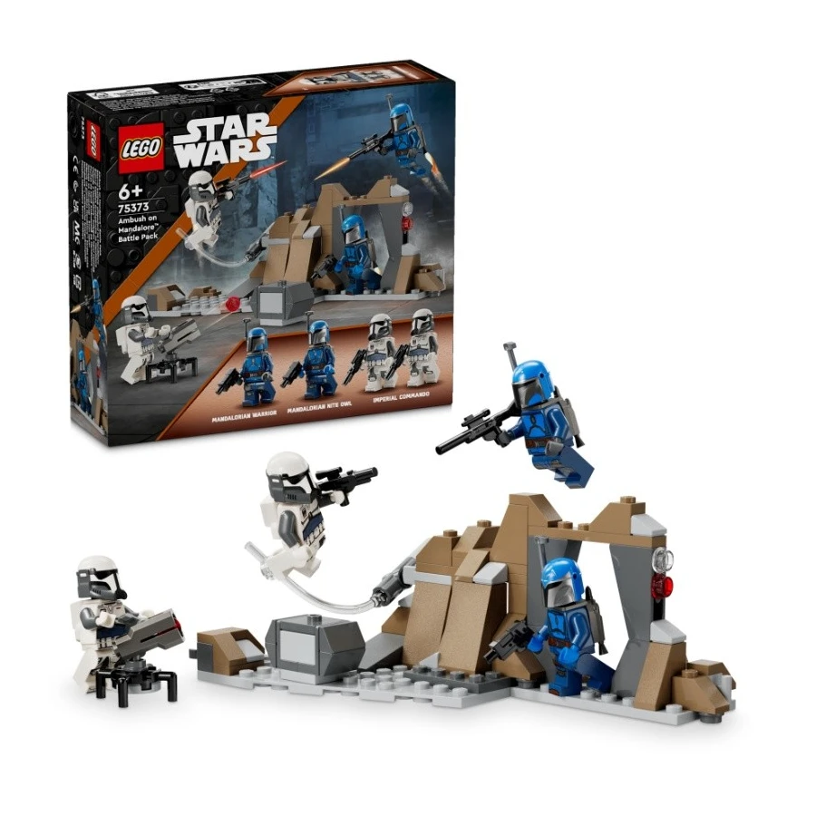 Děti si připomenou velkolepé bitvy s jetpacky se stavebnicí Bitevní balíček přepadení na Mandaloru (75373) z řady LEGO® Star Wars: The Mandalorian. Tato fantastická stavebnice představuje skvělý dárek pro kreativní kluky, holky a fanoušky od 6 let, kteří s ní znovu prožijí akční scény z 3. řady seriálu Star Wars: Mandalorian. Najdou v ní 4 sběratelské minifigurky LEGO: Mandaloriánskou Sůvu, mandaloriánského válečníka a 2 imperiálními komanda. Nechybí ani řada doplňků LEGO, včetně blasterů, blasterových pistolí a jetpacků, a navíc průhledný dílek s rukojetí, díky kterému minifigurka LEGO umí „létat“. Sestavitelný skalní útvar s jeskyní a vystřelovacím dělem malým stavitelům přináší ještě více herních možností. V aplikaci LEGO Builder najdete digitální návod a nástroje pro přibližování a otáčení modelů, které dětem přinesou ještě lepší stavitelský zážitek. Skálu/jeskyni lze propojit s mandaloriánskou základnou v balíčku Souboj Paze Vizsly a Moffa Gideona (75386, prodává se samostatně) pro ještě více herních možností.