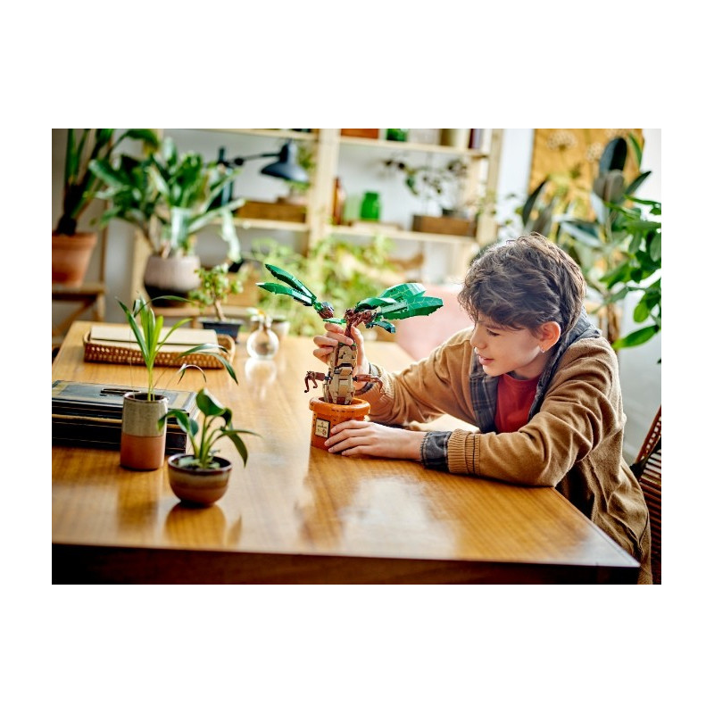• Nápad na výzdobu ve stylu Harryho Pottera – Stavebnice se skládá z 579 dílků a model Mandragory v květináči měří přes 27 cm na výšku