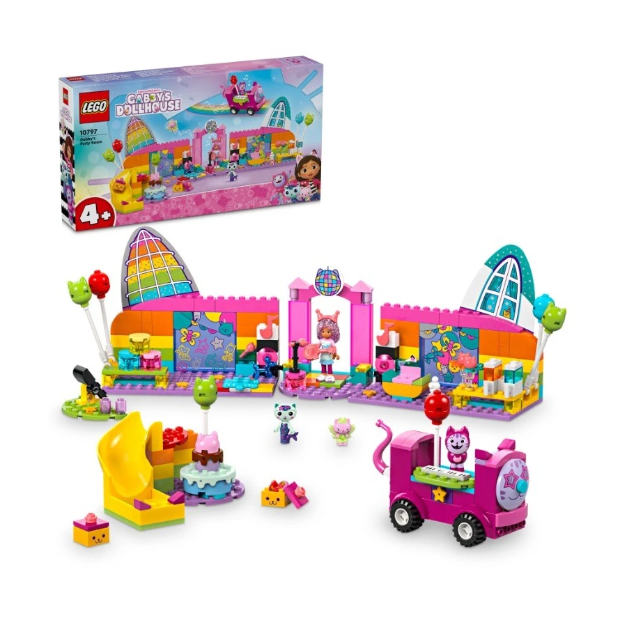 Gábi a její párty-místnost (10797) je perfektní diskotéková stavebnice pro fanoušky seriálu Gábinin kouzelný domek od studia DreamWorks Animation. Táto zábavná hračka pomůže dětem od 4 let rozvíjet sebedůvěru, soustředění a schopnost řešit problémy. Tato diskotéková stavebnice je skvělá hračka pro kluky i holky! Najdete v ní Gábi, „DJ“ Daniela Jamese Kocoura, Vílu kočičku a Rybočku a spoustu hudebních párty hraček včetně pohyblivého párty autobusu se zabudovanými klávesami, otáčejícího se parketu, kytary, 2 mikrofonů a třpytivé disco koule – a vše je připraveno na nekonečné nápadité hraní! Mezi doplňky patří balónky a kolečkové brusle na diskotéku, popkorn, 2 sklenice ledové tříště v odpočinkové zóně a katapult s plechovkami pro hru na shazování. Pro Gábi je tu připraven dort a dárečky, které budou doručeny po skluzavce. Součástí stavebnice je velká začátečnická kostka, která dětem pomůže začít stavět. Barevný obrázkový návod skvěle poslouží jako intuitivní průvodce stavěním.
