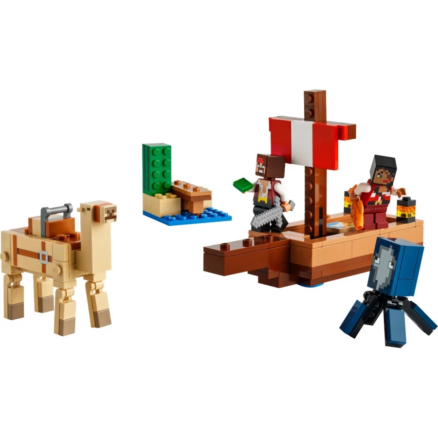 Nastupte na palubu se 2 piráty LEGO® Minecraft® a vydejte se na dobrodružství v biomu pouště. Co to vykukuje z vody? Oliheň! Vyloďte se na souš, prohlédněte si mapu, osedlejte velblouda a hurá na vyjížďku za dalším velkolepým dobrodružstvím v Minecraftu.