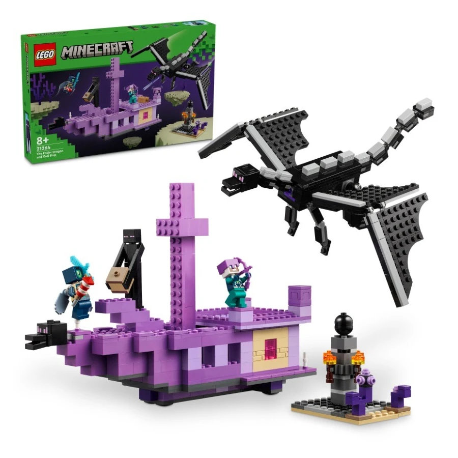 • Drak z Enderu a loď z Endu – Tato stavebnice LEGO® Minecraft® inspirovaná videohrou je vhodná pro děti od 8 let a najdete v ní řadu figurek ze světa Minecraftu, se kterými se děti postaví drakovi a vydají se na dobrodružství na palubě lodě