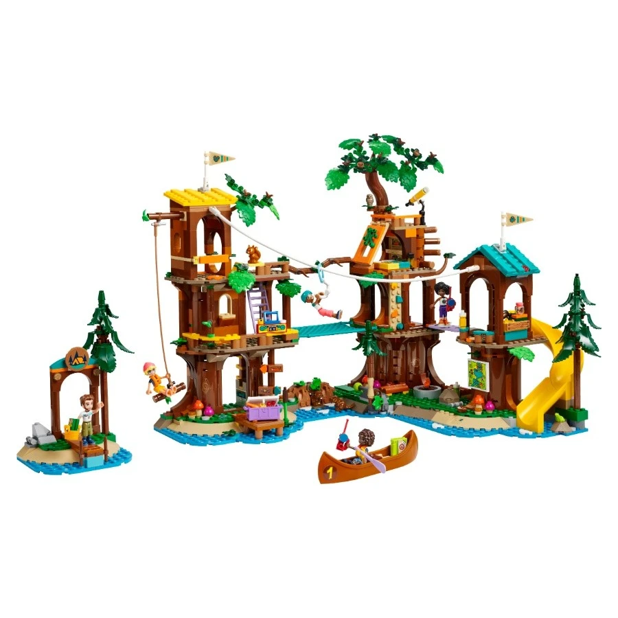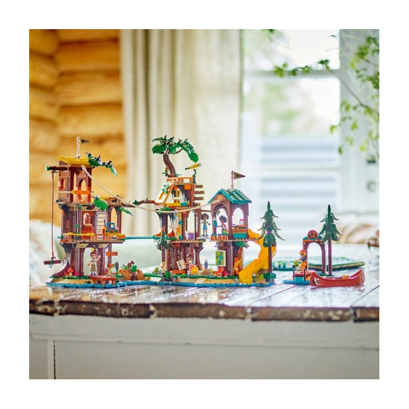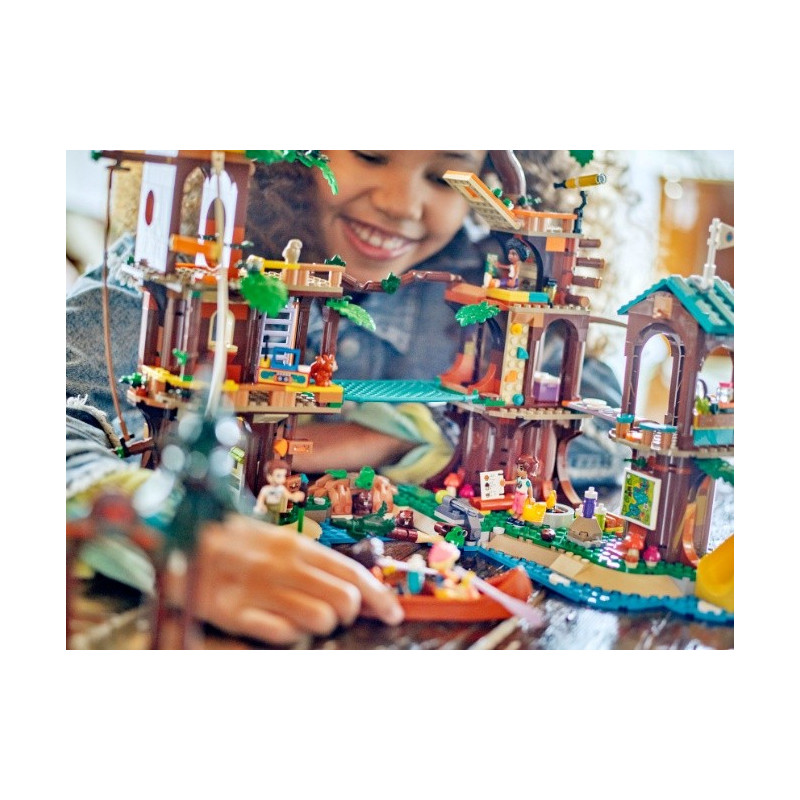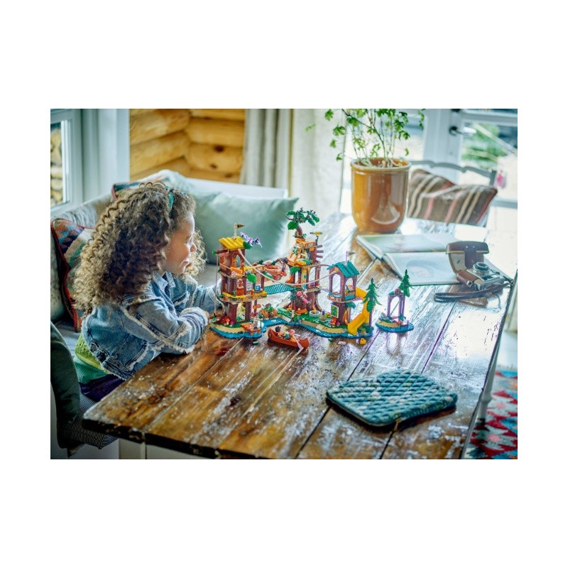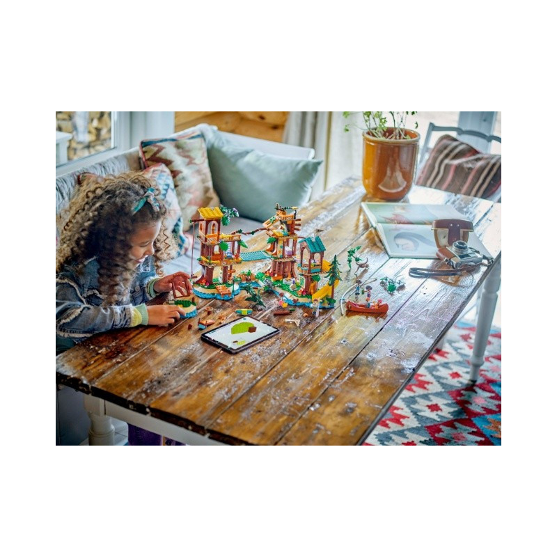 • Stavebnice tábora pro děti – Sada LEGO® Friends Dobrodružný tábor – dům na stromě pro děti i holky od 8 let obsahuje 5 minipanenek, spoustu figurek zvířat, kanoi a sportovní doplňky