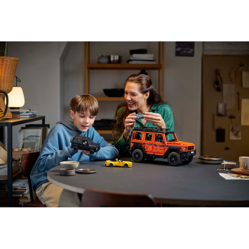 Připomeňte si 45. výročí jednoho z nejoblíbenějších terénních vozidel na světě s pohlcující stavebnicí LEGO® Technic Mercedes-Benz G 500 PROFESSIONAL Line pro dospělé. Tento model slavného vozidla ikonické třídy G je nabitý autentickými prvky a skvělými funkcemi, které si zamiluje každý fanoušek automobilky Mercedes-Benz. Ponořte se do stavby propracovaného modelu vozidla s funkčním řízením a zvýšeným podvozkem. Otevřete kapotu a prohlédněte si 6válcový řadový pístový motor. Poté otestujte převodovku s nastavením pohonu, neutrálu a zpátečky. Vyzkoušejte dvě uzávěrky diferenciálu, poté otevřete dveře a prohlédněte si propracovaný interiér. Dobrodruzi si zamilují příslušenství, jako je žebřík, rezervní kolo, střešní nosič, otevírací dveře kufru a kapota. Tento úchvatný model LEGO Technic představuje skvělý dárek a krásný výstavní kousek pro dospělé milovníky značky Mercedes-Benz.