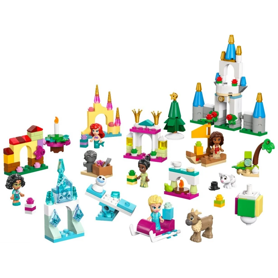• Bavte se při stavění – Za mnoha okénky se skrývají sestavitelné aktivity, jako je houpačka pro sněhuláčka, Arielin podmořský palác, Vaianina miniloď, Elsin ledový palác, sáňky, vánoční stromeček a spousta dalšího