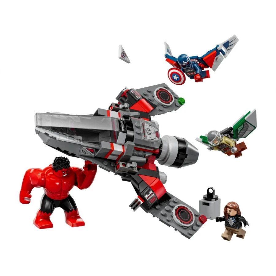 Přidejte se ke Kapitánovi Amerikovi, Red Hulkovi, Falconovi a Ruth Bat-Seraph a vyleťte vysoko nad oblaky v této parádní stíhačce superhrdinů. Ruth Bat-Seraph se posadí do kokpitu stíhačky a vydá se na další dobrodružství. Kapitán Amerika a Falconrozprostřou svá křídla a letí vedle ní. Odpalte dron Redwing a najděte zloduchy. Díky 2 vystřelovačům vám nebude nic stát v cestě!