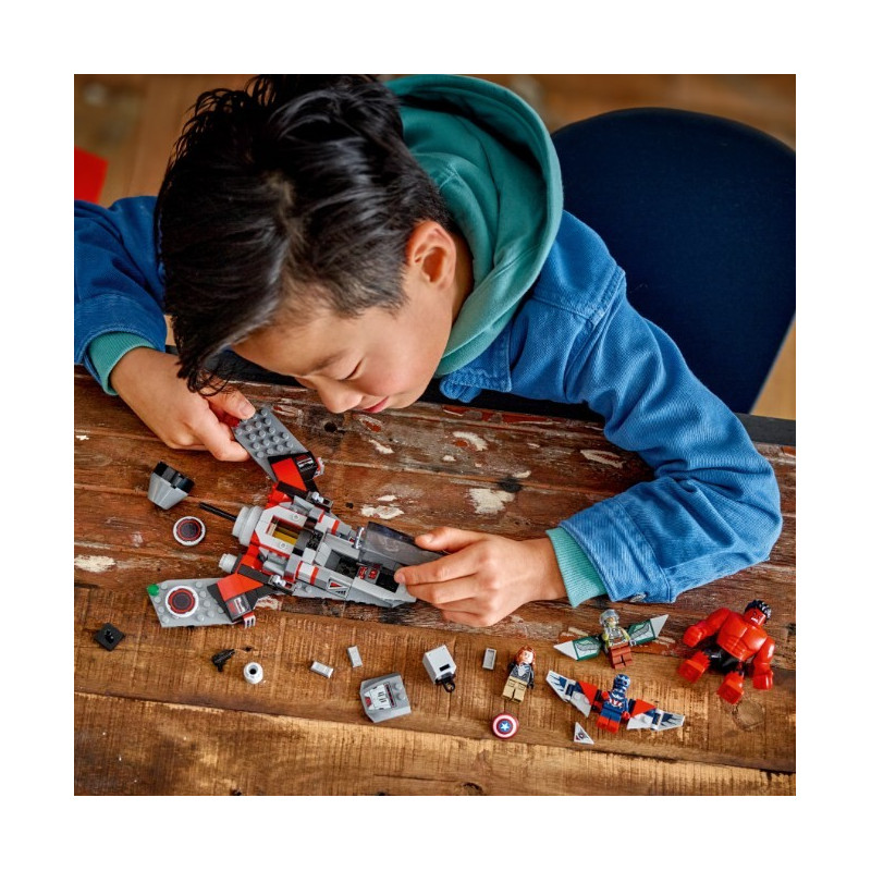 • Zábavná stíhačka superhrdinů – Se stavebnicí LEGO® Marvel Souboj: Kapitán Amerika vs. Red Hulk si poskládáte model tryskáče, se kterým se děti od 8 let vydají na nekonečná akční dobrodružství v oblacích