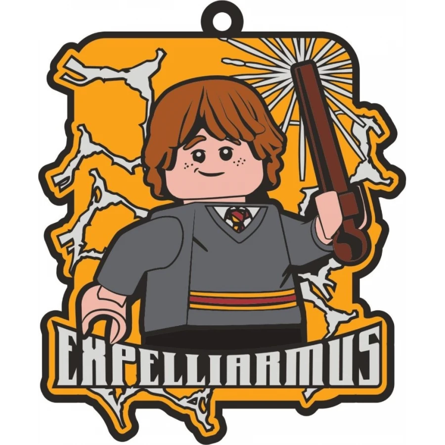 • LEGO® Harry Potter™ Magnet – Expelliarmus – Pružný, netoxický magnet ze silikonu bez PVC s obrázkem minifigurky LEGO Rona Weasleyho, která sesílá odzbrojovací kouzlo