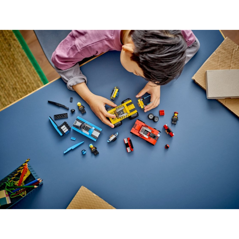 • Sada se třemi závoďáky – Se stavebnicí LEGO City (60395) Sada všestranných závoďáků mají děti možnost přehrávat akční dobrodružství z videohry LEGO® 2KDRIVE nebo vlastní závody